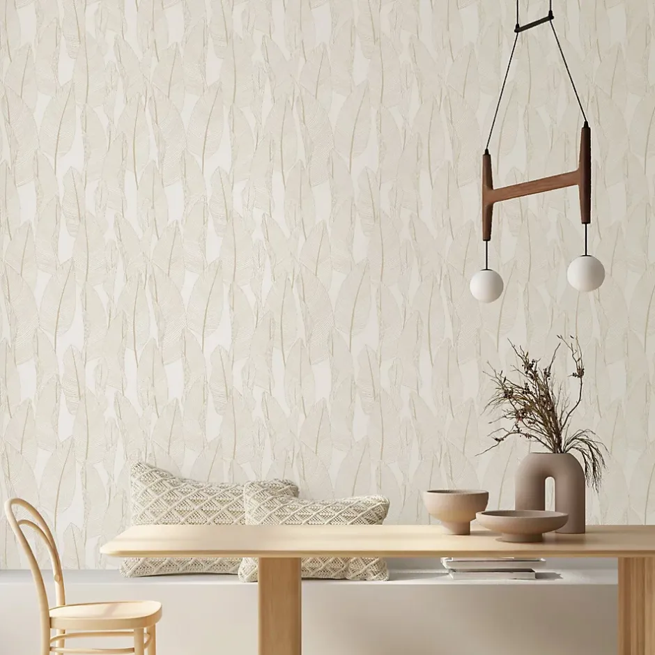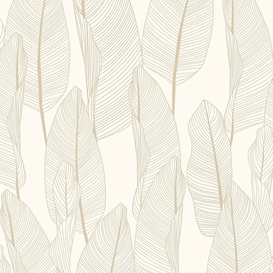 Papier peint vinyle intissé feuille de bananier beige, terracotta L.1005 x l.53cm Lutèce