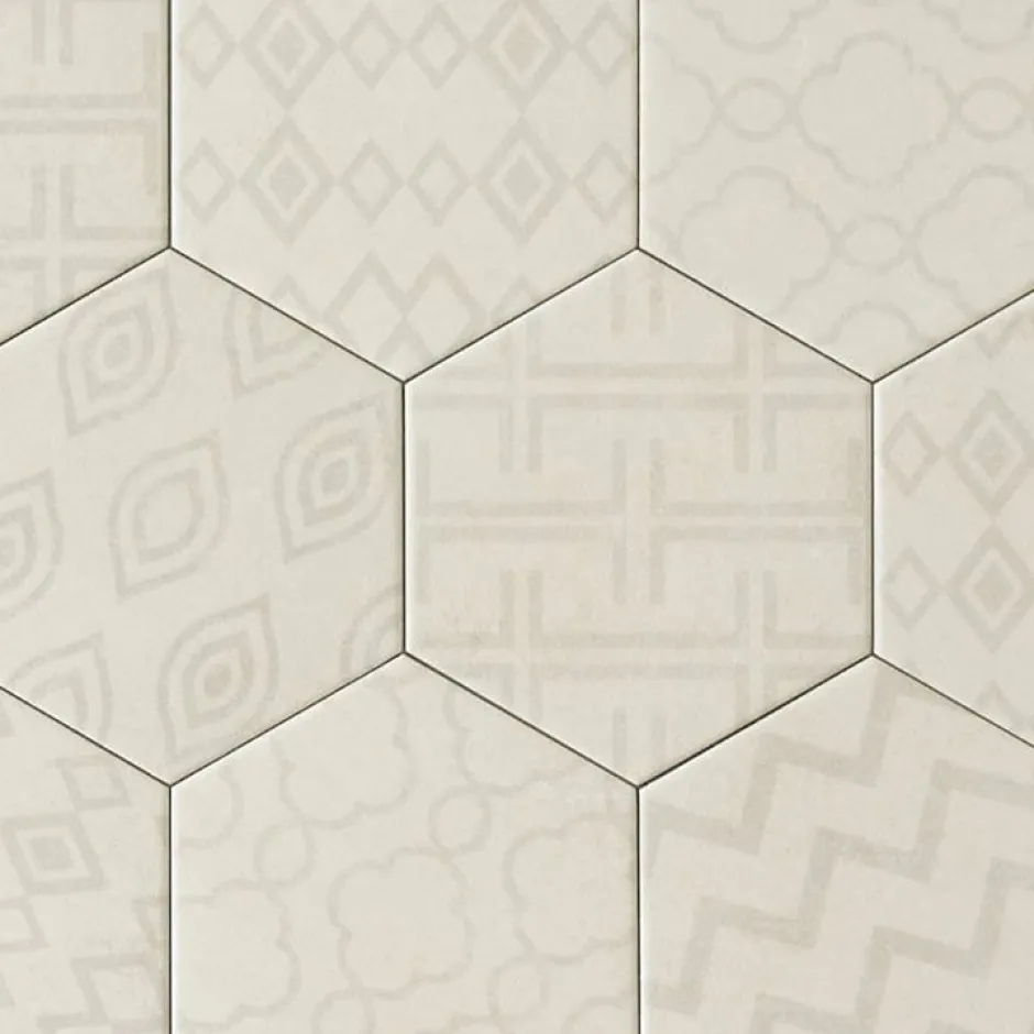 La collection de carreaux hexagonaux en grès cérame se compose d’une couleur unie, le Custom Ivory, et d’une combinaison de carreaux décoratifs Decor Ivory Custom, qui peuvent être posés seuls ou en combinaison avec le Custom Ivory. Ces carreaux aux tons beige clair sont idéaux pour tout espace intérieur, que ce soit au sol ou au mur. Cuisines, salles de bain, salons, bars, restaurants… seuls ou combinés entre eux