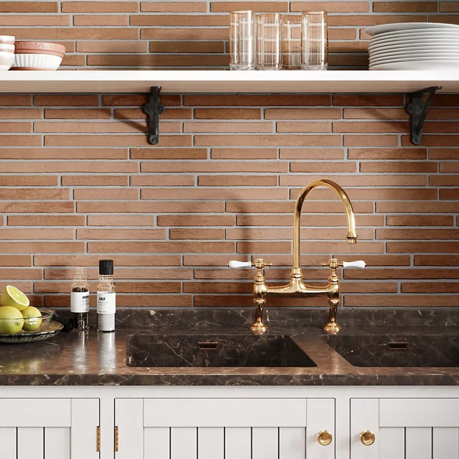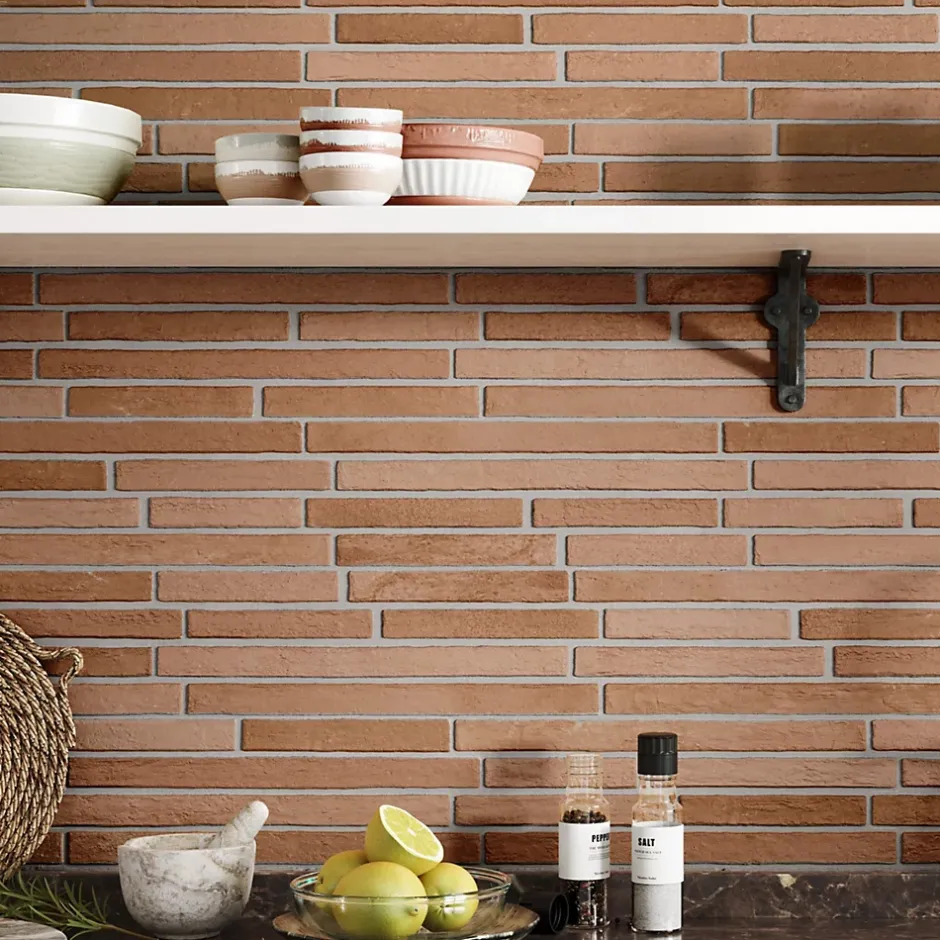 Lux Mosaic Carrelage Mural Intérieur/Extérieur Grès cérame Premium 15x45 cm Amsterdam Cotto Rectangulaire Effet Brique