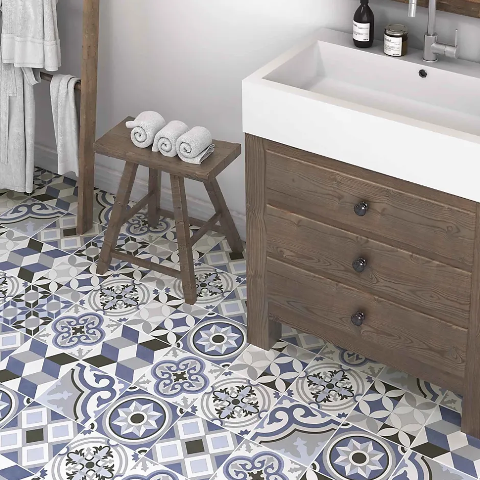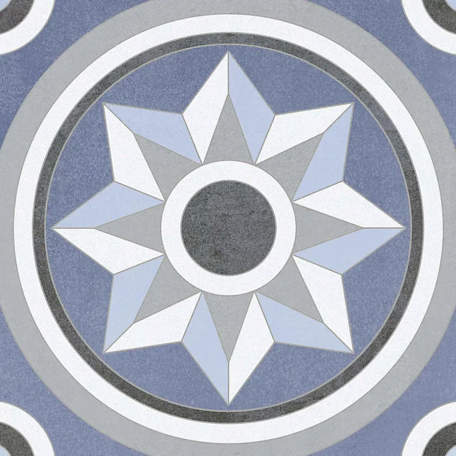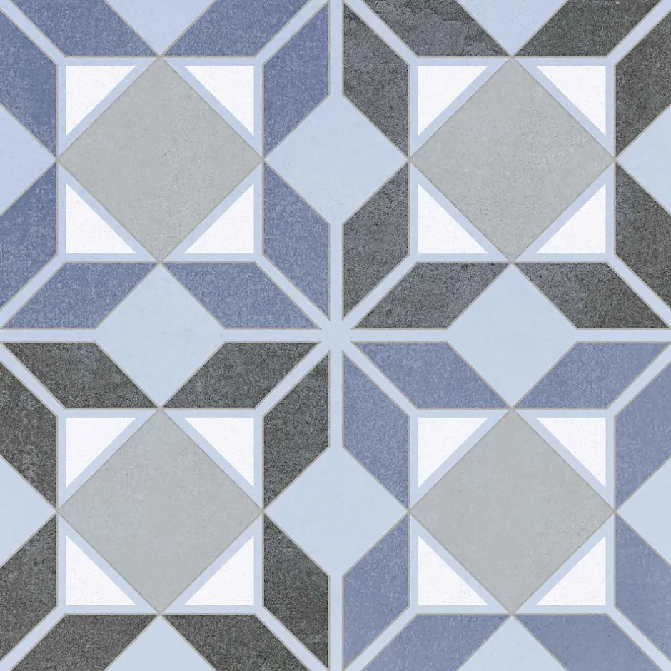 Combinaison type patchwork de designs classiques de carrelage en porcelaine inspiré par les motifs hydrauliques avec une forte prédominance de la couleur bleue. Il peut être posé dans tous les espaces résidentiels et les zones humides grâce à sa pâte porcelanique avec moins de 0,5% d’absorption d’eau et à son émail vitrifié qui le rend imperméable aux taches et à l’humidité.