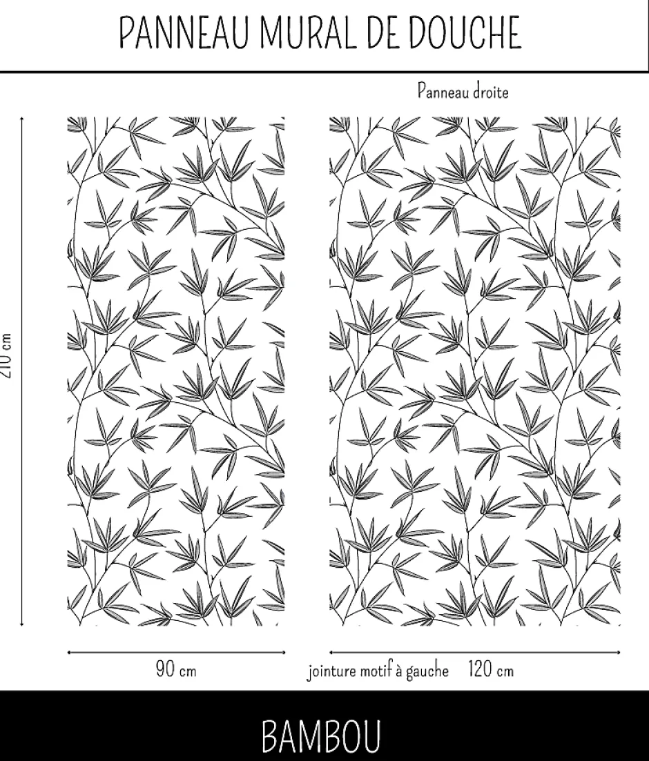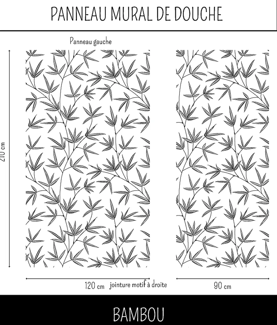 Vous souhaitez rénovez votre douche de salle de bain, pas forcément envie de faire de gros travaux, Ma Nouvelle Déco propose une solution simple et rapide pour recouvrir votre vieux carrelage aux joints abîmés par le temps, avec le panneau mural pour douche et salle de bain.Nos panneaux sont en aluminium 3 mm, Ils existent en deux tailles 90 cm x 210 cm et 120 cm x 210 cm.Le motif est imprimé directement sur la plaque d’aluminium en haute définition, et protégé par un film vernis en finition mat satiné anti UV.La pose est rapide sur le support existant (placo, peinture, carrelage, bois…) préalablement nettoyé et dépoussiéré. Nous conseillons une colle silicone adaptée au support pour coller le panneau mural.Dans le cas d’une découpe, c’est facile avec une scie sauteuse (lame métaux), et une scie cloche pour l’emplacement des tuyaux d’arrivées d’eau.Nous conseillons de poser un joint silicone sur l’ensemble du pourtour du panneau afin d’assurer une étanchéité parfaite. Pour parfaire votre installation vous pouvez aussi installer des profils et cornières en aluminium que vous pourrez trouver dans votre magasin de bricolage préféré.Pour le nettoyage et l’entretien du panneau mural de douche, une éponge et de l’eau savonneuse suffisent. (pas de détergents, ni d’éponge abrasive).Etanche et 100 % recyclable.Fabriqué en France.