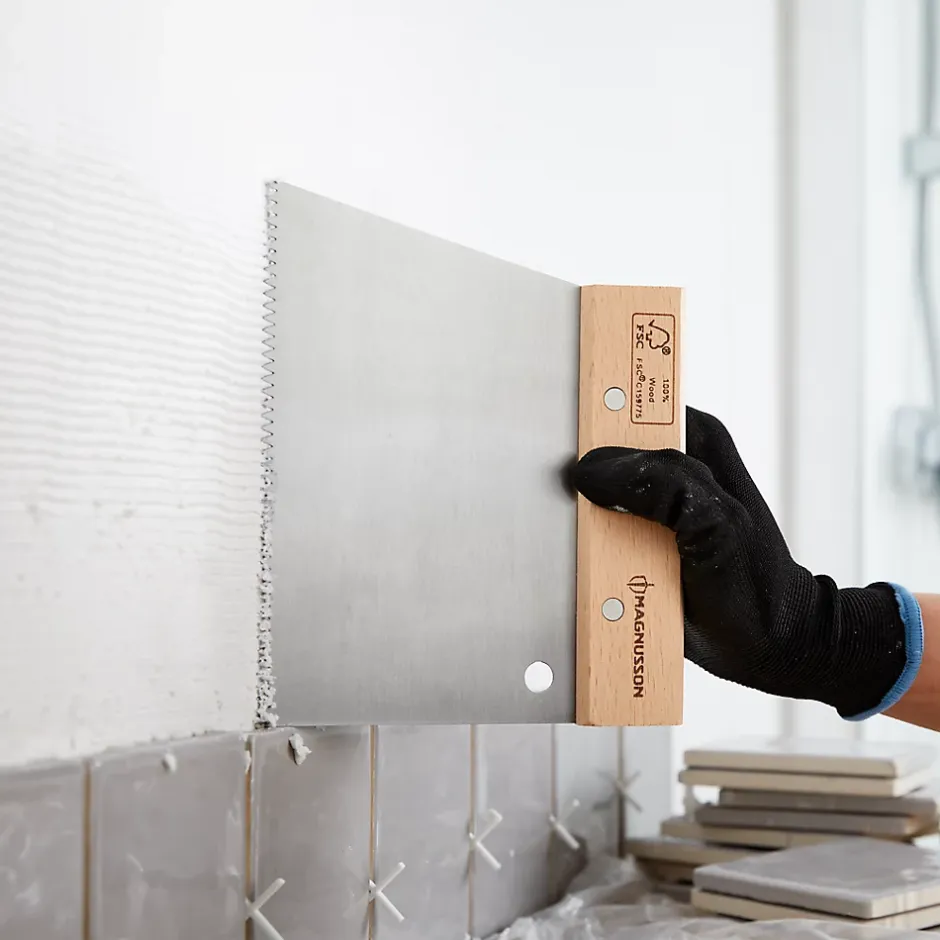 Ce peigne à colle V4 pour carrelage Magnusson est conçu pour étaler la colle pour carrelage de manière régulière sur les murs. Grâce à sa lame en acier résistante et sa poignée en bois, cet outil garantit une grande durée de vie, même lors d’une utilisation intensive et prolongée. Les encoches en v de 4mm permettent une utilisation avec des carreaux d’une taille maximale de 100 x 100mm. Dispose d’une garantie à vie