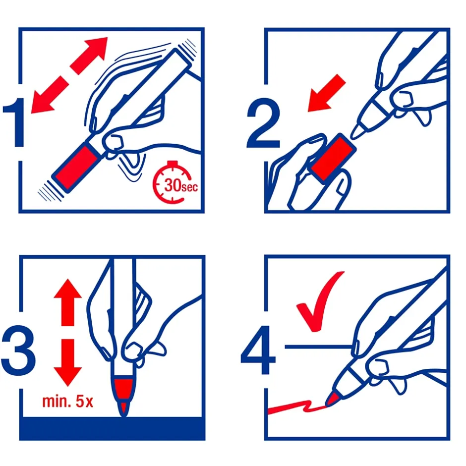 Marqueur joints pour retoucher et éclaircir les joints, par exemple dans la cuisine et la salle de bains. La pointe ogive a une largeur de trait de 2 à 4 mm. L’encre parfaitement couvrante résiste à l’eau, à l’effacement au chiffon sec, à la lumière et à l’abrasion, elle sèche rapidement et a une faible odeur. Des pointes de rechange sont jointes. Ce marqueur est idéal pour les professionnels et les particuliers cherchant à effectuer des retouches sur les joints de leurs cuisines et salles de bains.