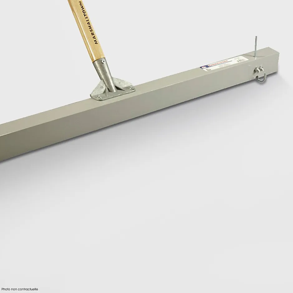 Règle d’étalement 91 cm Marshalltown – Précision et efficacité pour vos travaux de béton lisse Obtenez des finitions impeccables avec la règle d’étalement Marshalltown de 91 cm vous permettant de mettre en place Harmony Béton lissé ou Harmony Microchape en réglant exactement la hauteur de votre mortier grâce aux deux vis. Conçue pour répondre aux exigences des professionnels du béton, cet outil robuste et ergonomique est idéal pour lisser et niveler vos surfaces bétonnées avec précision. Points forts : Précision optimale : Conçue pour lisser et niveler de manière uniforme. Matériaux résistants : Structure en aluminium durable pour une longévité accrue. Maniabilité : Poignée ergonomique pour un confort d’utilisation prolongé. Polyvalence : Convient à une grande variété de projets en béton lissé. Caractéristiques : • Longueur : 91 cm. • Réglage de la hauteur de pose : De 0 à 70 mm grâce aux deux vis. • Matériau : Aluminium haute qualité. • Poids : Léger pour faciliter la manipulation. • Marque : Marshalltown. Conseils : Pour obtenir des résultats optimaux : Nettoyez l’outil après chaque utilisation pour préserver sa durabilité. Assurez une pression uniforme lors de l’étalement pour une finition lisse.