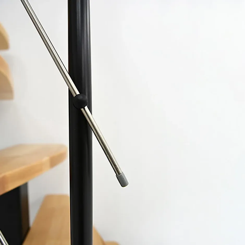 ESCALIER DESIGN- L’escalier d’intérieur droit en bois et acier est une solution simple et design pour accéder à un étage ou une mezzanine- Le mélange du bois massif et de l’acier offre des contemporaine à votre intérieur.- Peut s’intégrer dans un duplex au style Loft ou dans une maison moderne.- Sa conception droite permet d’optimiser l’espace en réalisant un espace de rangement ou de décoration sous l’escalierESPACES REDUITS- Escalier d’intérieur d’une largeur de 0.60 mètres pour des habitations avec des espaces réduits.- Passer d’un étage à un autre ou un espace en hauteur comme dans des appartements parisiens qui ont une surface réduite.HAUTEUR REGLABLE- Régler la hauteur en faisant varier la hauteur de la fixation sur la structure au moment du montage.- Pour une configuration spécifique, n’hésitez pas à nous adresser vos côtes (hauteur sous plafond et épaisseur de dalle) et photos de l’emplacement de l’escalier.STRUCTURE ET RAMPE NOIRE- Structure en acier peint par poudrage et rails inférieurs de la rampe en acier inoxydable.- La rampe garantit un accès sécurisé lors de la montée et de la descente.- Rampe avec des poteaux reliés entre eux par 3 lisses rigidesMARCHES ET MAIN-COURANTE HÊTRE- Marches en bois de hêtre avec une finition laqué.- Designe des marches qui permet un gain de place au sol.- Main-courante en hêtre qui garantit un accès sécurisé lors de la montée et de la descenteTREMIE- Trémie minimum requise : 130 x 65cm- La hauteur de passage entre l’escalier et le plafond doit être au minimum de 220 cm, pour un passage libre confortable.CHARGE ADMISSIBLE- Charge admissible par marche : 200kg- Charge admissible total : 800kgMONTAGE FACILE- La rampe peut être installée à droite ou à gauche selon votre convenance- 2 personnes minimum conseillées.-