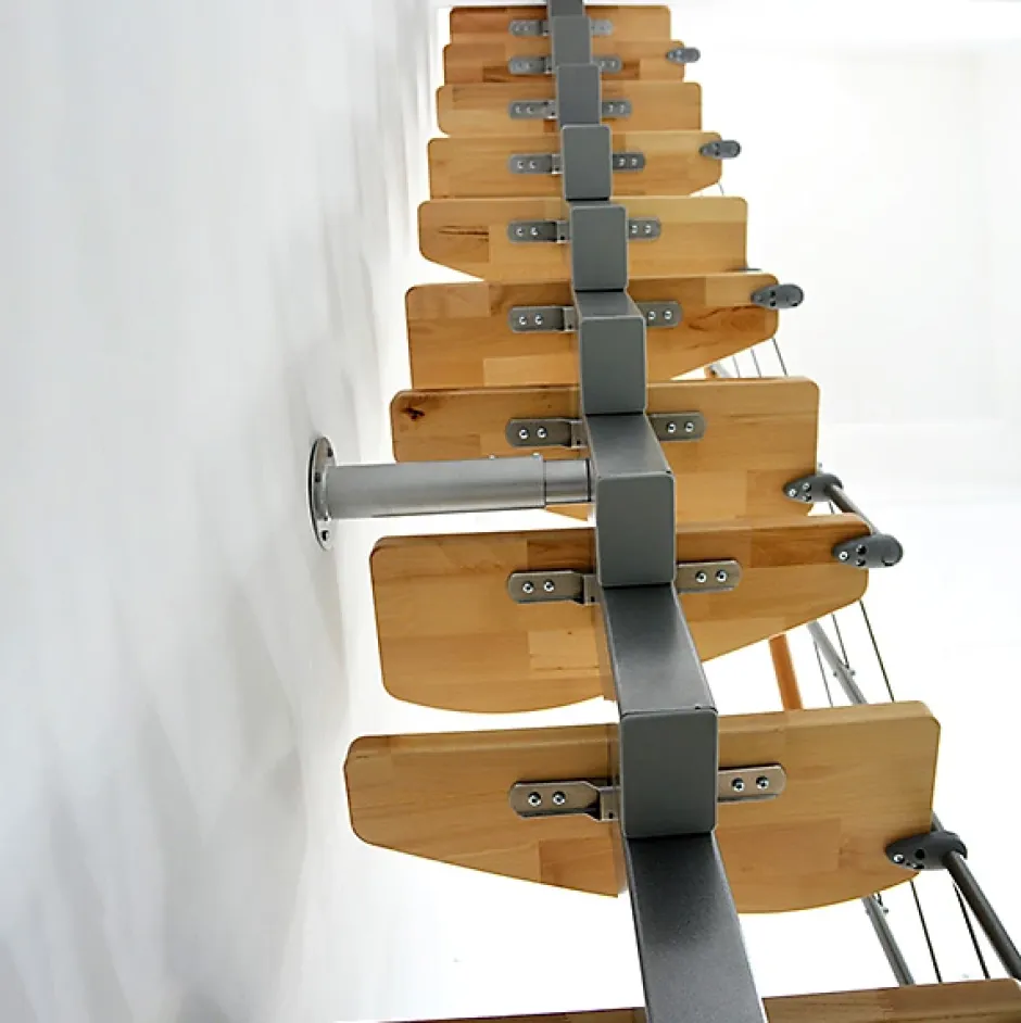 ESCALIER DESIGN- L’escalier d’intérieur droit en bois et acier est une solution simple et design pour accéder à un étage ou une mezzanine- Le mélange du bois massif et de l’acier offre des contemporaine à votre intérieur.- Peut s’intégrer dans un duplex au style Loft ou dans une maison moderne.- Sa conception droite permet d’optimiser l’espace en réalisant un espace de rangement ou de décoration sous l’escalierESPACES REDUITS- Escalier d’intérieur d’une largeur de 0.60 mètres pour des habitations avec des espaces réduits.- Passer d’un étage à un autre ou un espace en hauteur comme dans des appartements parisiens qui ont une surface réduite.HAUTEUR REGLABLE- Régler la hauteur en faisant varier la hauteur de la fixation sur la structure au moment du montage.- Pour une configuration spécifique, n’hésitez pas à nous adresser vos côtes (hauteur sous plafond et épaisseur de dalle) et photos de l’emplacement de l’escalier.STRUCTURE ET RAMPE GRISE- Structure en acier peint par poudrage et rails inférieurs de la rampe en acier inoxydable.- La rampe garantit un accès sécurisé lors de la montée et de la descente.- Rampe avec des poteaux reliés entre eux par 3 lisses rigidesMARCHES ET MAIN-COURANTE HÊTRE- Marches en bois de hêtre avec une finition laqué.- Designe des marches qui permet un gain de place au sol.- Main-courante en hêtre qui garantit un accès sécurisé lors de la montée et de la descenteTREMIE- Trémie minimum requise : 130 x 65 cm- La hauteur de passage entre l’escalier et le plafond doit être au minimum de 220 cm, pour un passage libre confortable.CHARGE ADMISSIBLE- Charge admissible par marche : 200kg- Charge admissible total : 800kgMONTAGE FACILE- La rampe peut être installée à droite ou à gauche selon votre convenance- 2 personnes minimum conseillées.-