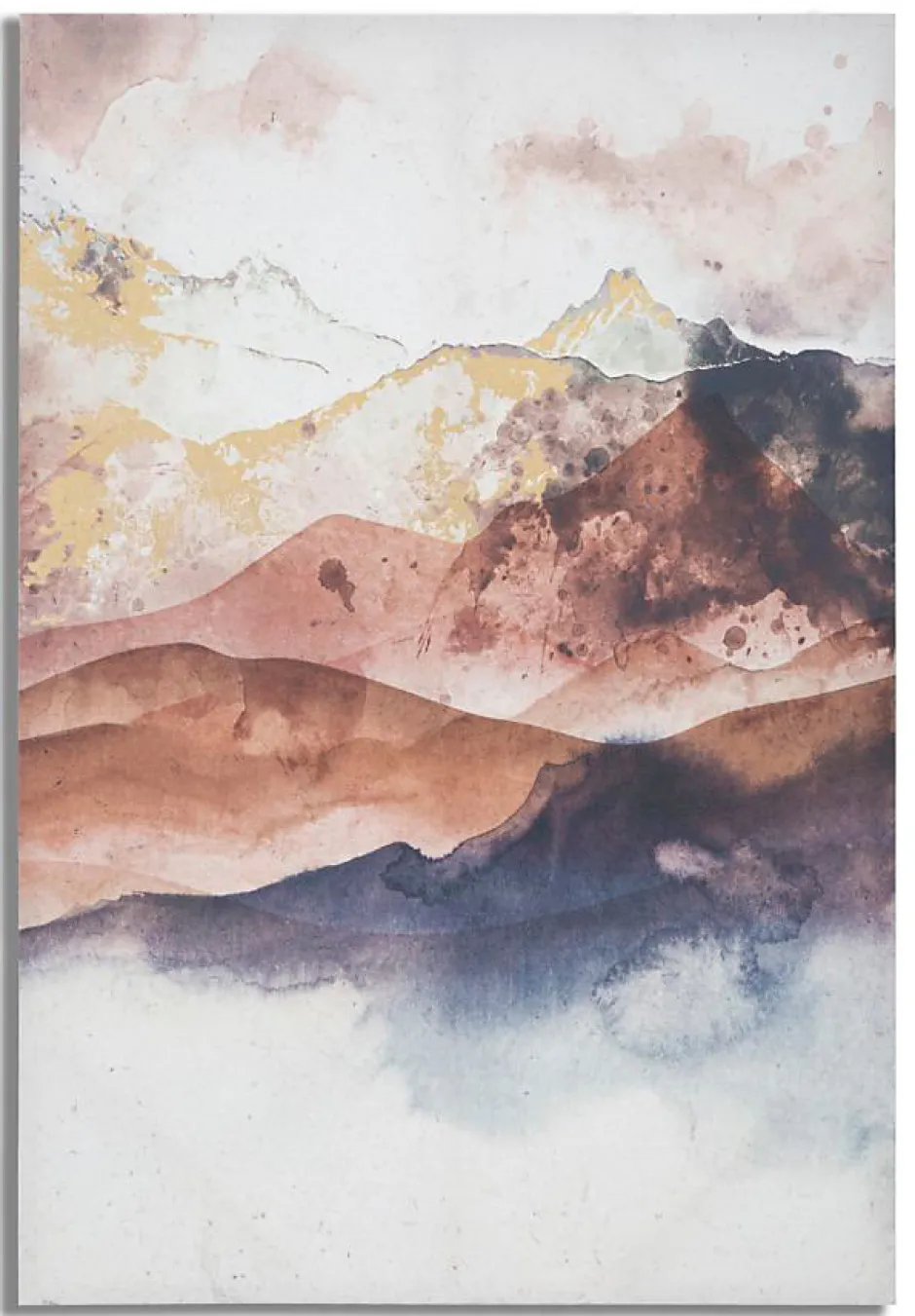 Impression sur toile encadrée en bois, présentant un motif abstrait rappelant un panorama de montagne, apportant une touche d’élégance à tout espace. Dimensions : 80 x 120 cm, épaisseur du cadre : 3 cm.