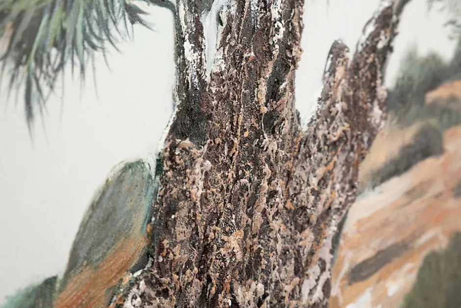 Peinture sur toile représentant un olivier majestueux, sculpté par le vent et l’histoire, qui prend vie au milieu de tons chauds et d’un feuillage vert éclatant. Une œuvre qui évoque racines, stabilité et beauté intemporelle. Avec des applications en relief. Dimensions : 120 x 80 x 3,8 cm.