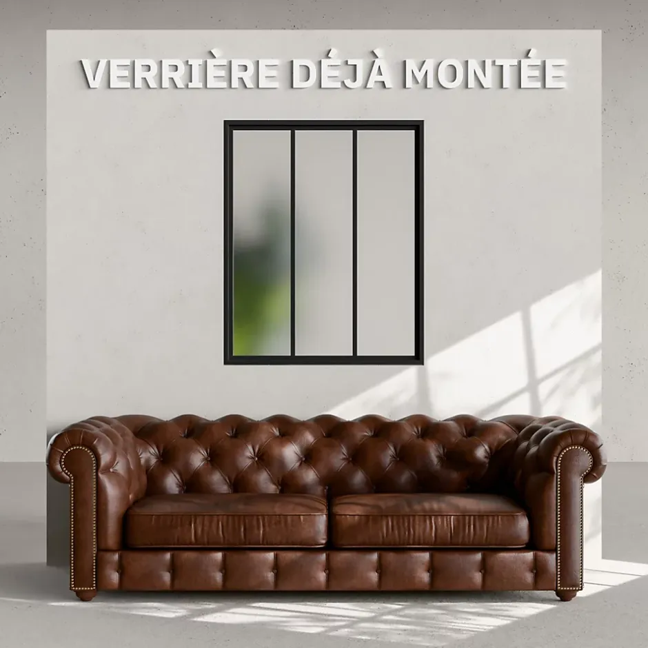 La verrière atelier, l’élément phare du style industriel/loft La verrière atelier est un must-have de la décoration style industriel/loft. Avec son cadre métallique et ses vitrages en verre trempé, elle rajeunit un espace et lui donne du cachet. Véritable plus-value dans un intérieur, la verrière atelier est par-dessus tout fonctionnelle, elle permet de séparer des pièces sans les cloisonner et les priver de lumière. Les possibilités d’aménagement avec une verrière atelier sont diverses et variées. Elle peut par exemple servir à délimiter une entrée, à séparer une cuisine d’une salle à manger ou bien à donner de l’intimité à une pièce d’eau. Le verre dépoli donne un effet opaque. Cette particularité garantit une certaine discrétion, empêchant de voir au travers. La verrière industrielle sépare les espaces tout en conservant la lumière À la différence d’un verre classique transparent, un verre dépoli a un aspect translucide qui n’occulte pas la lumière. Aussi pratique que décorative, la verrière atelier 3 carreaux en verre dépoli peut se poser entre cloisons ou entre cloisons mais avec un côté apparent ou en angle. Verre trempé résistant Conserve la lumière naturelle
