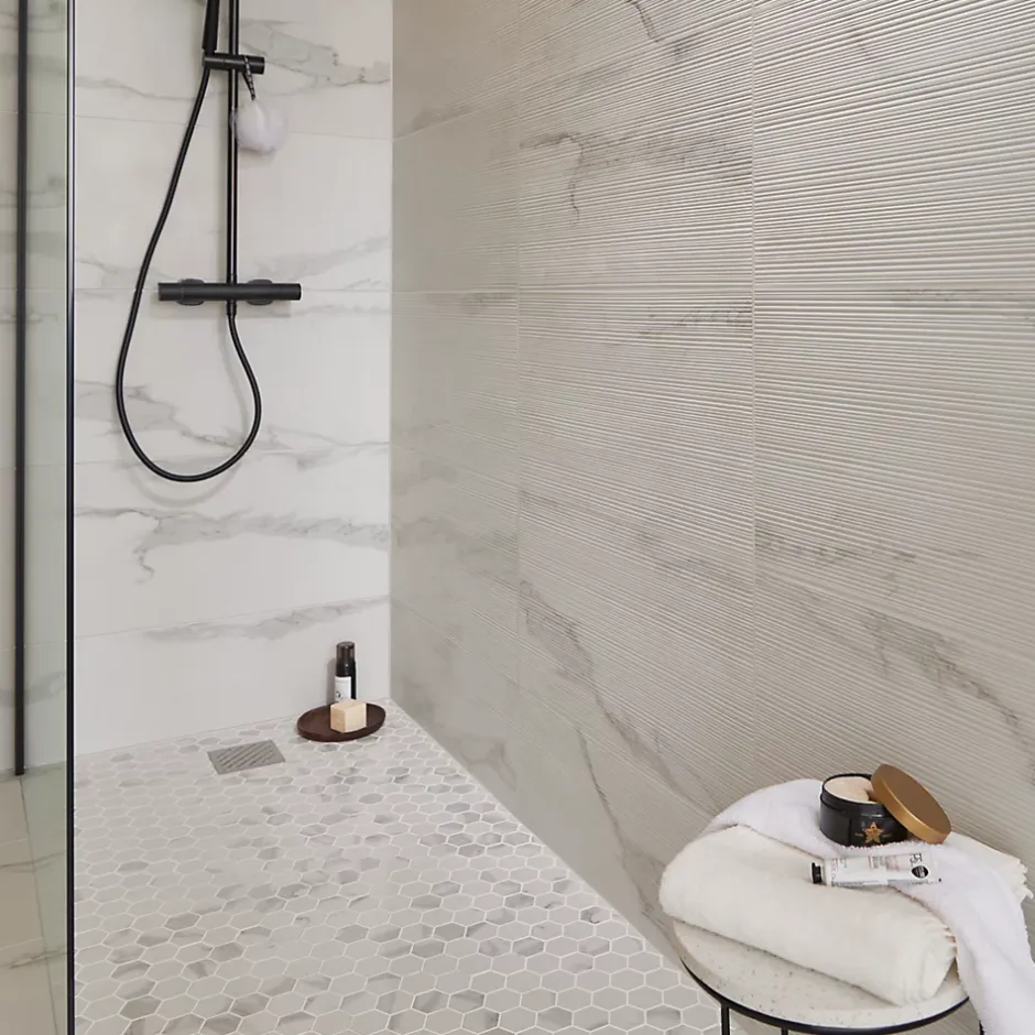 Cette mosaïque en grès cérame émaillé peut être utilisée seule ou assortie au carrelage mural Ultimate Marble