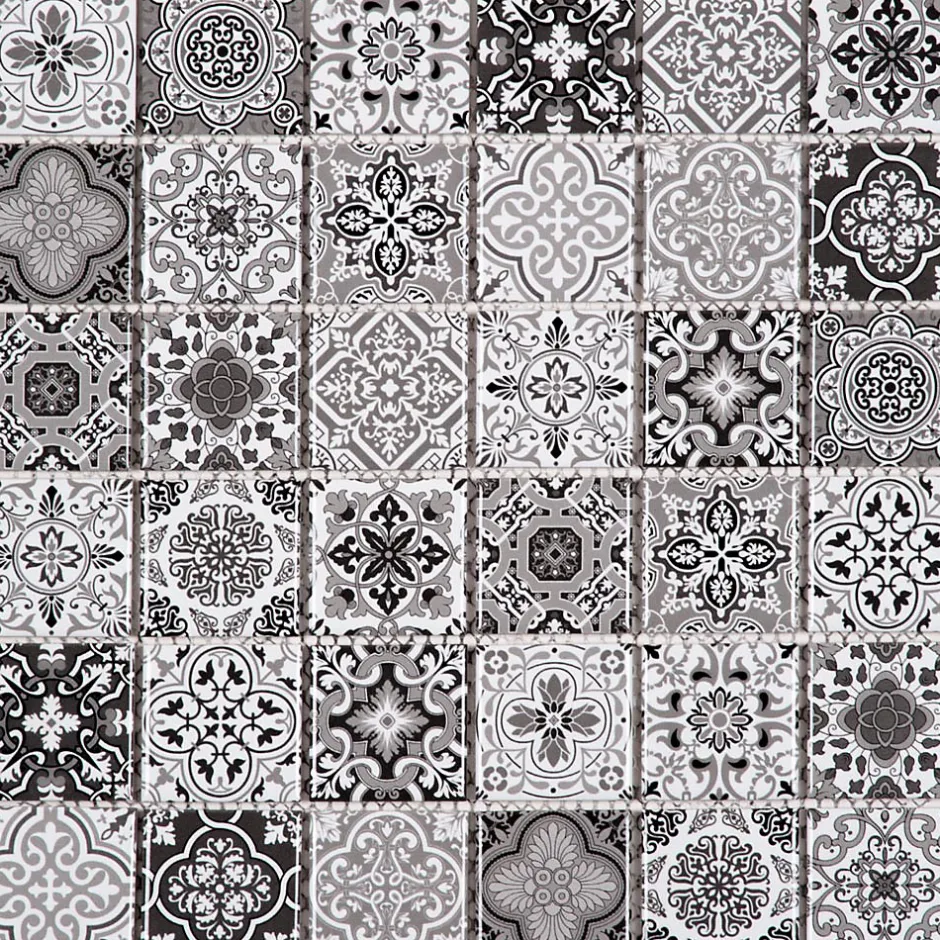 Transformez votre espace avec cette mosaique de céramique façon carreau ciment. Sa finition satinée et ses tons gris ajoutent charme et durabilité à votre cuisine ou salle de bain.