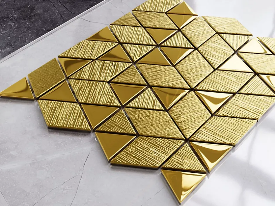 En verre. Idéal pour une installation murale à l’intérieur, mais aussi excellent pour créer des bandes décoratives et/ou des inserts car il est facile à couper – Il s’adapte à toutes les surfaces, droites et ondulées, également idéal pour les sols. La finition de surface permet un nettoyage facile – L’épaisseur de la mosaïque est de 6 mm.Taille de la plaque : 26,3 x 30,3 cm ;Taille des carreaux : triangles 3,8 x 3,8 cm ; losanges 4,7 x 8,2 cm ;Nombre de plaques par 1m2 : 12 ;Pays de fabrication : Pologne ;Certification : ISO 9001:2015.1. Résistant aux hautes températures et aux rayures ; 2. Idéal comme doublure de bain ou de douche; 3. Le verre de notre mosaïque a subi un traitement thermique breveté ; 4. Facile à découper grâce à la maille.