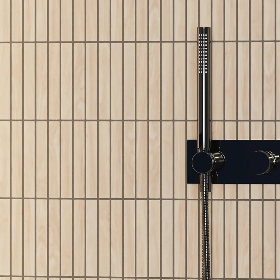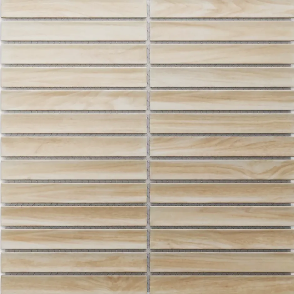 Mosaïque en céramique. Idéal pour une installation murale dans les espaces intérieurs de la maison, mais également excellent pour créer des bandes et/ou des inserts décoratifs car il est facile à couper grâce au maillage. Il s’adapte à toutes les surfaces, droites ou ondulées, également idéal pour les sols. La mosaïque est fournie sur un filet éco-plastique. Spécifications techniques : – Choix : Je ; – Antidérapant : non ; – Type de matériau : céramique (La découpe de la céramique est autorisée avec le disque céramique/carrelage.) ; – Dimensions de la plaque : 29.6cm x 30.0cm; – Taille de la carte : 14.7cm x 2.1cm; – Épaisseur : 6mm; – Quantité au m² : 12; – Résistant à l’eau ; – Résistant à la chaleur (convient aux saunas, spas et installation à proximité de sources de chaleur, par exemple poêles). Méthode d’installation :- Utilisez votre adhésif de montage spécifique préféré. – Appliquer le mastic époxy. – Laver l’excédent de mastic époxy avec une éponge douce et de l’eau. Traitement: La finition de surface permet un nettoyage facile avec un chiffon en microfibre, pour garantir la durabilité de la couleur dans le temps. Ne pas utiliser de produits abrasifs ou corrosifs. Ne pas frotter ni gratter. Élégance et facilité d’adaptation : La mosaïque en verre trempé se distingue par sa résistance à l’eau et à l’humidité, ce qui la rend parfaite pour une utilisation dans des environnements à forte humidité, tels que les salles de bains, les cuisines et les saunas. Il est idéal pour décorer les murs à côté des des baignoires et des douches. La finition en mosaïque s’intègre parfaitement aux designs modernes et minimalistes, ajoutant une touche d’élégance et de sophistication aux espaces.