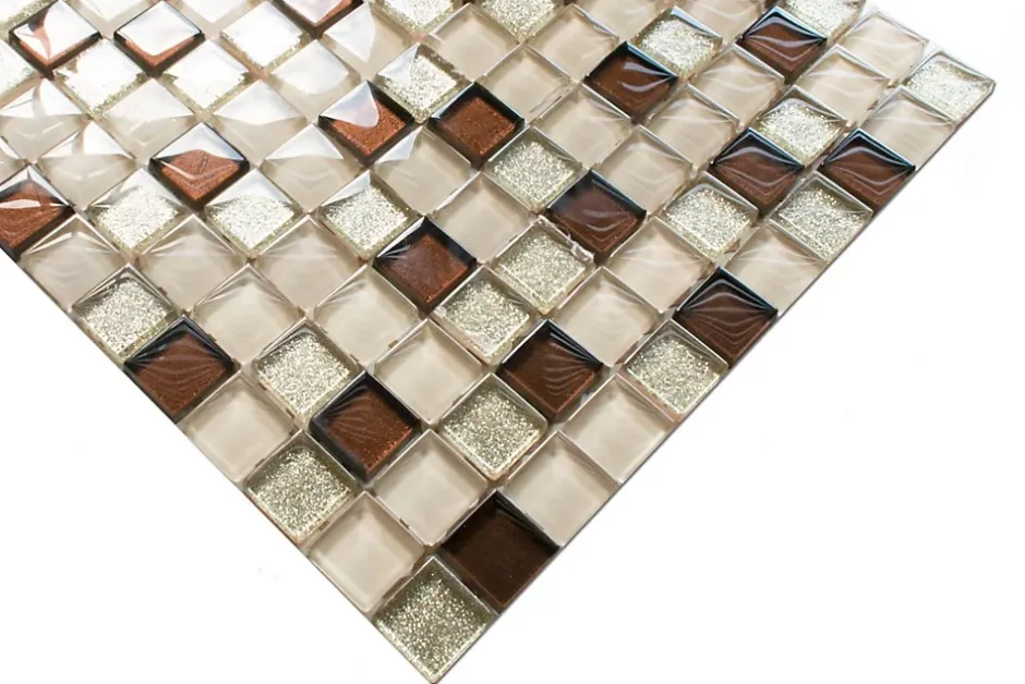 Mosaïque en verre sur filet pour salle de bain ou cuisine 30 cm x 30 cm – Bejge Monte Carlo-Ilcom Hot