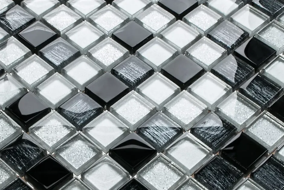 En verre. Idéal pour une installation murale à l’intérieur, mais aussi excellent pour créer des bandes décoratives et/ou des inserts car il est facile à couper – Il s’adapte à toutes les surfaces, droites et ondulées, également idéal pour les sols. La finition de surface permet un nettoyage facile – L’épaisseur de 8 mm est particulièrement adaptée à la pose en combinaison avec la plupart des carreaux. Taille de la plaque : 30 x 30 cm ; Nombre de plaques par 1m2 : 11 ; 1 plaque de poids (en kg) : 1,4Kg ; Pays de fabrication : Pologne ; Certification : ISO 9001:2015. 1. Résistant aux hautes températures et aux rayures ; 2. Idéal comme doublure de bain ou de douche; 3. Le verre de notre mosaïque a subi un traitement thermique breveté ; 4. Facile à découper grâce à la maille éco-plastique.