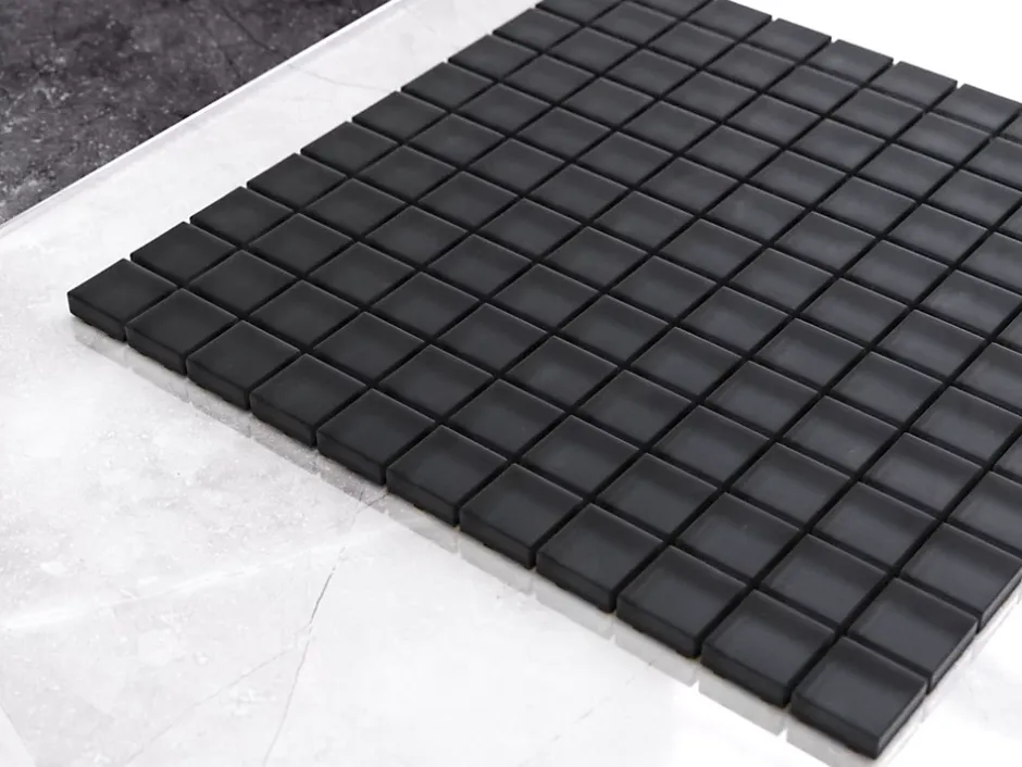 En verre. Idéal pour une installation murale dans les espaces intérieurs de la maison, mais également excellent pour créer des bandes et/ou des inserts décoratifs car il est facile à couper. Il s’adapte à toutes les surfaces, droites ou ondulées, également idéal pour les sols. La finition de surface permet un nettoyage facile. L’épaisseur de 6 mm est particulièrement adaptée à la pose en combinaison avec la plupart des carreaux.Type de décoration : mural/piscine/cuisine/salle de bain ;matière : verre ;type de finition : brillant ;taille de la carte : 2,5 cm x 2,5 cm ;taille de la plaque : 30 cm x 30 cm ;épaisseur de la mosaïque : 6 mm ;Nombre de plaques pour 1 m² : 11 ;poids de la plaque 30 cm x 30 cm : 1,3 kg.Résistant aux hautes températures et aux rayures ;Idéal comme revêtement de baignoire ou intérieur de cabine de douche ;Le verre de notre mosaïque a subi un traitement thermique breveté ;Facile à découper grâce à la maille en éco-cellulose.