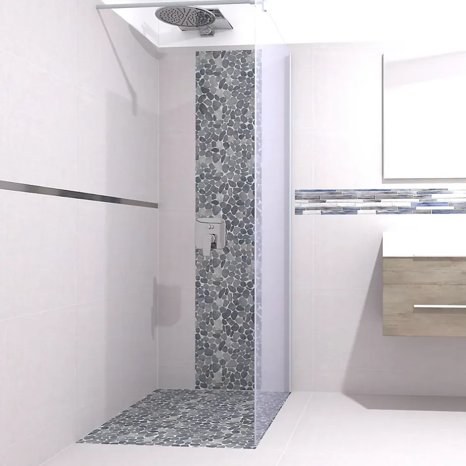 Mosaïque Galet naturel rectifié Flat gris L. 30 x l. 30 cm Mat Inter