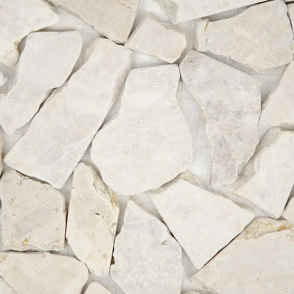 - Pré-assemblée sur trame, cette mosaïque en marbre se pose facilement, garantissant un alignement parfait pour un résultat professionnel.