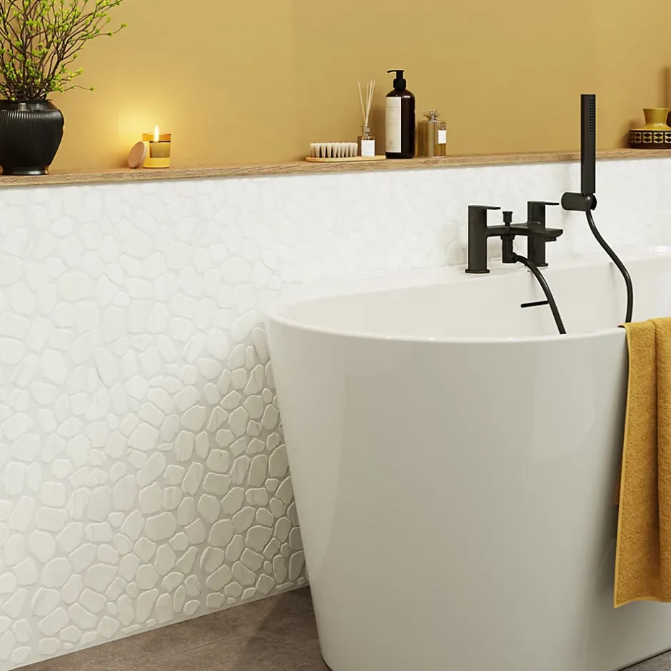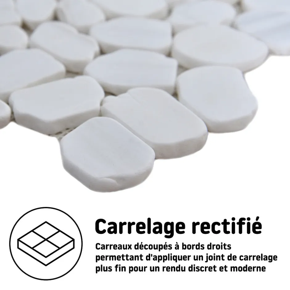 La mosaïque Malaca ivoire ajoute subtilité et élégance à vos murs et sols intérieurs. Ses carreaux carrés texturés présentent un effet pierre mate ivoire doux, créant un rendu sophistiqué et intemporel. Conçue pour un usage multi-pièces et compatible avec le chauffage au sol, elle offre durabilité et polyvalence. Utilisable seule ou en combinaison avec d’autres carreaux muraux, cette mosaïque permet d’obtenir un design harmonieux et personnalisé, offrant aux espaces intérieurs une finition élégante, raffinée et durable, parfaite pour un style contemporain.