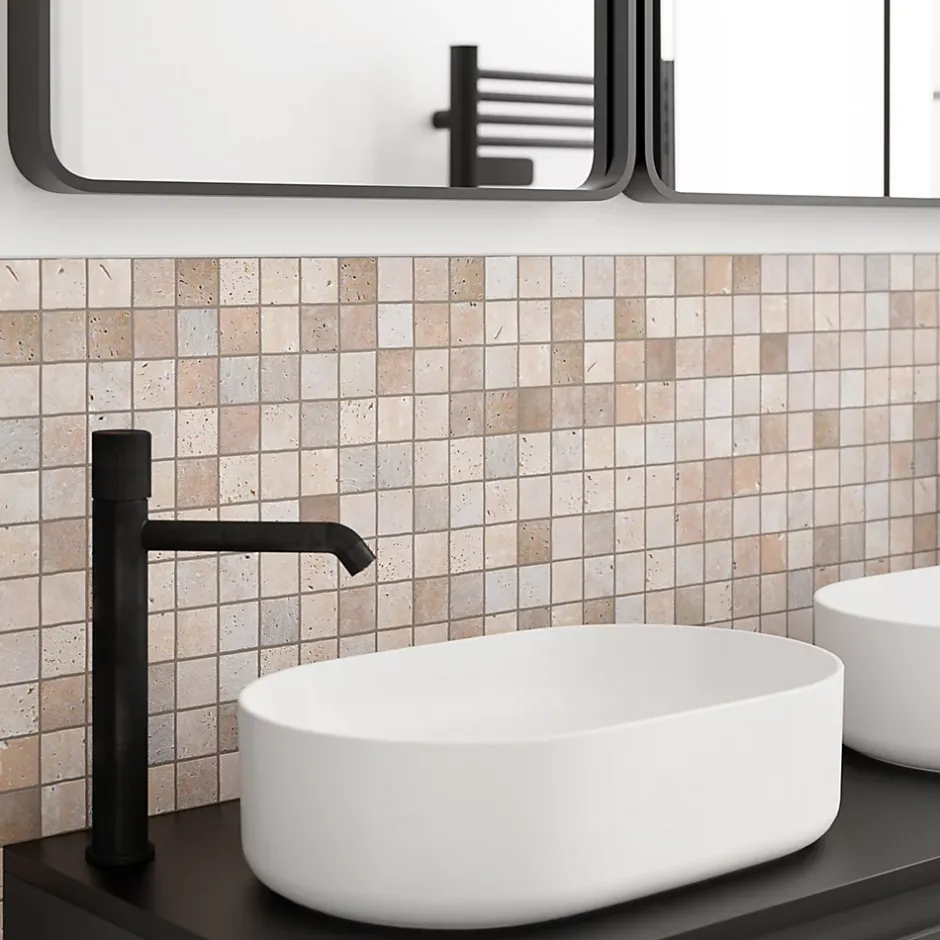 La mosaïque Travertino beige apporte polyvalence et style à vos intérieurs. Ces carreaux carrés texturés et mats peuvent être utilisés seuls ou combinés avec d’autres carreaux Travertino pour un design coordonné. Fabriqués en pierre naturelle de qualité supérieure, ils offrent durabilité et esthétisme. Compatibles avec le chauffage au sol, ces mosaïques assurent un rendu harmonieux, élégant et fonctionnel sur murs et sols intérieurs, créant un style travertin intemporel qui valorise chaque espace avec sophistication et authenticité.