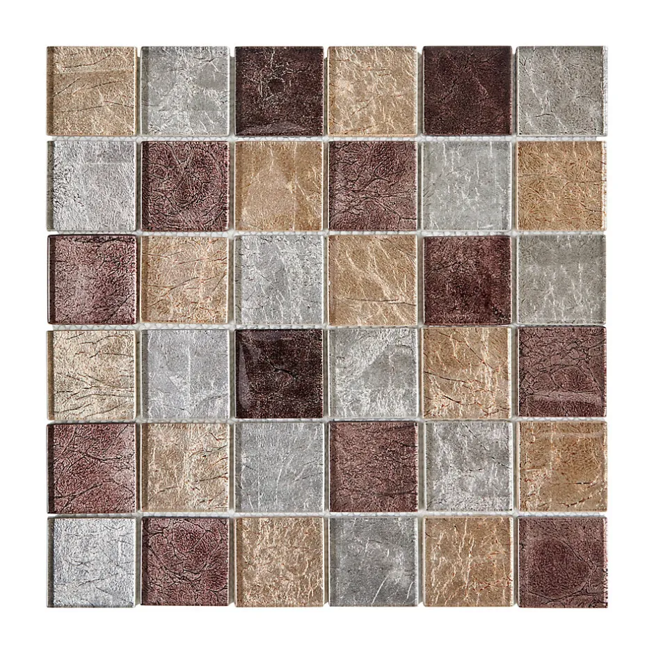 Feuille de mosaïque 30x30cm composée de verre avec effet feuille froissée marron, argent et mordoré