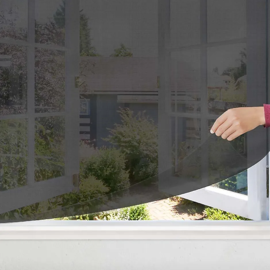 - Lot de 4 moustiquaires noires pour fenêtres. Chaque film mesure 130 cm de large et 150 cm de haut.