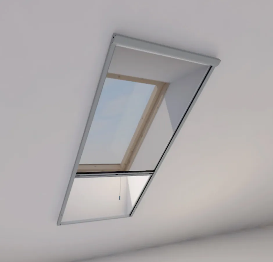 La moustiquaire fenêtre de toit enroulable se pose de face sur le mur encadrant la fenêtre. Posée ainsi, elle ne gêne par l’ouverture des fenêtres à bascule.