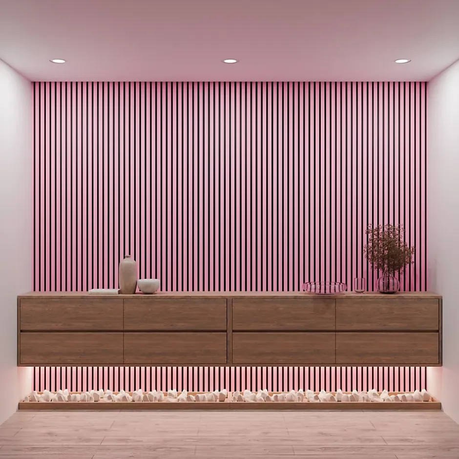 Alliant performance acoustique et esthétique contemporaine, nos panneaux acoustiques souples constituent une solution idéale pour améliorer le confort sonore de vos espaces tout en apportant une finition décorative soignée.Caractéristiques techniques :Dimensions : 240 cm x 60 cmÉpaisseur : 1,1 cmSurface couverte : 1,44 m² par panneauPoids : 5 kgMatériaux : feutrine + lattes MDF plaquéesFixation : colle silicone ou visUtilisation : isolation et traitement acoustiqueCompatibilité : tous types de pièces (habitation, bureau, usage professionnel)Structure et matériauxLes panneaux se composent de deux couches principales :Une base en feutrine acoustique permettant une absorption efficace des sons et une réduction des nuisances sonores.Une finition en lattes de MDF (fibre de bois à densité moyenne), recouvertes d’un placage esthétique et résistant, offrant un rendu élégant et durable.Amélioration acoustiqueGrâce à leur structure multicouche, ces panneaux réduisent efficacement les résonances et réverbérations. Ils sont adaptés à de nombreux environnements : bureaux, studios, open-spaces, salons, salles de réunion ou home cinéma.Installation simple et rapideLeur conception légère (5 kg) permet une pose facile sur murs ou plafonds à l’aide de colle silicone ou de vis. Aucun encadrement spécifique n’est nécessaire.Découpe conseillée : pour ajuster les panneaux aux dimensions souhaitées, l’utilisation d’une scie circulaire est recommandée afin d’obtenir une coupe nette et précise.EntretienDépoussiérage à l’aide d’un balai ou d’un aspirateur avec embout douxEn cas de taches : chiffon propre, humide et bien essoréÉviter les produits abrasifs