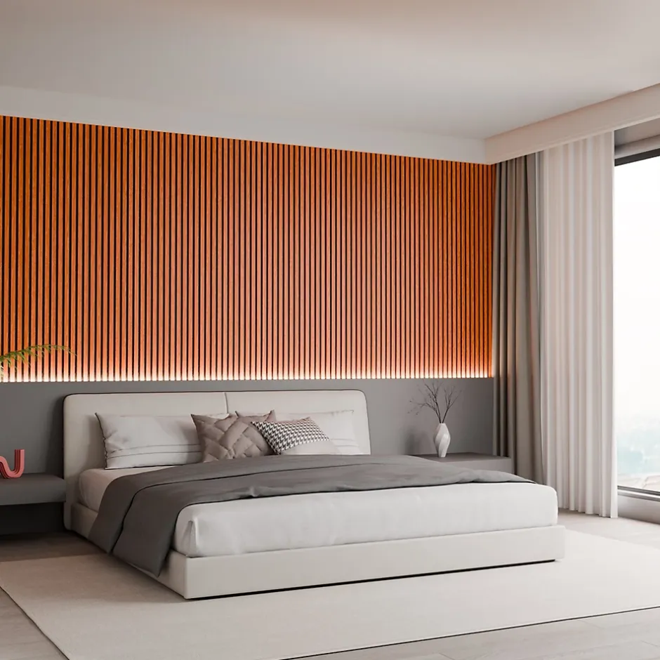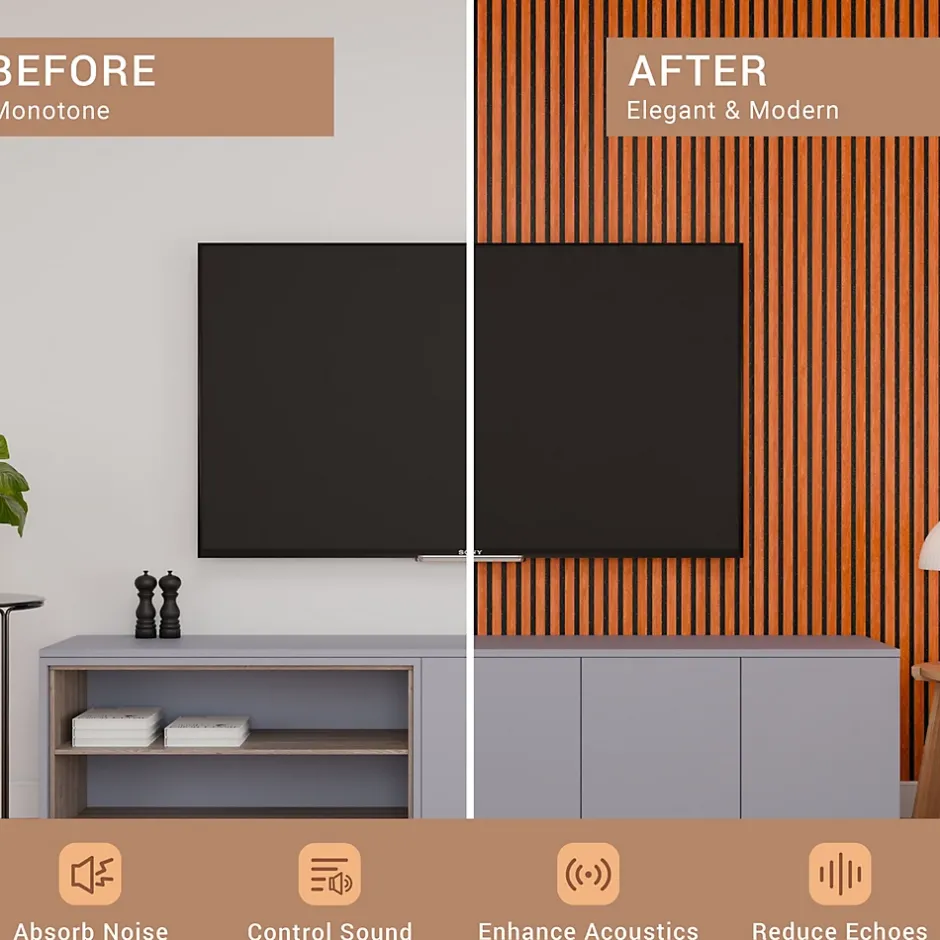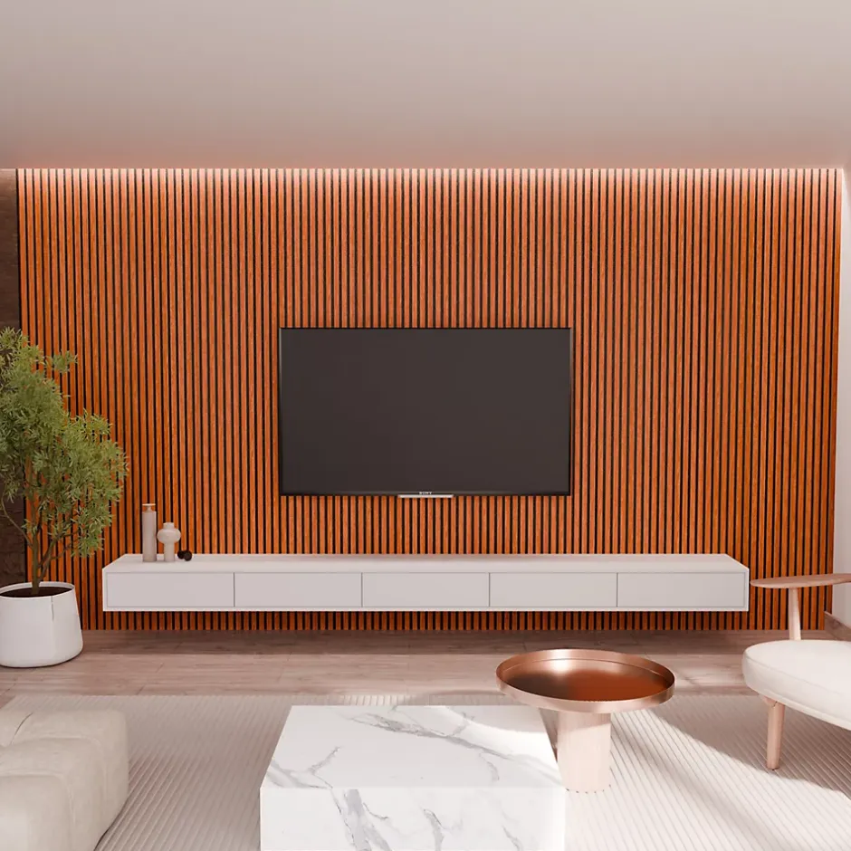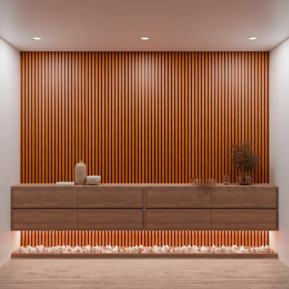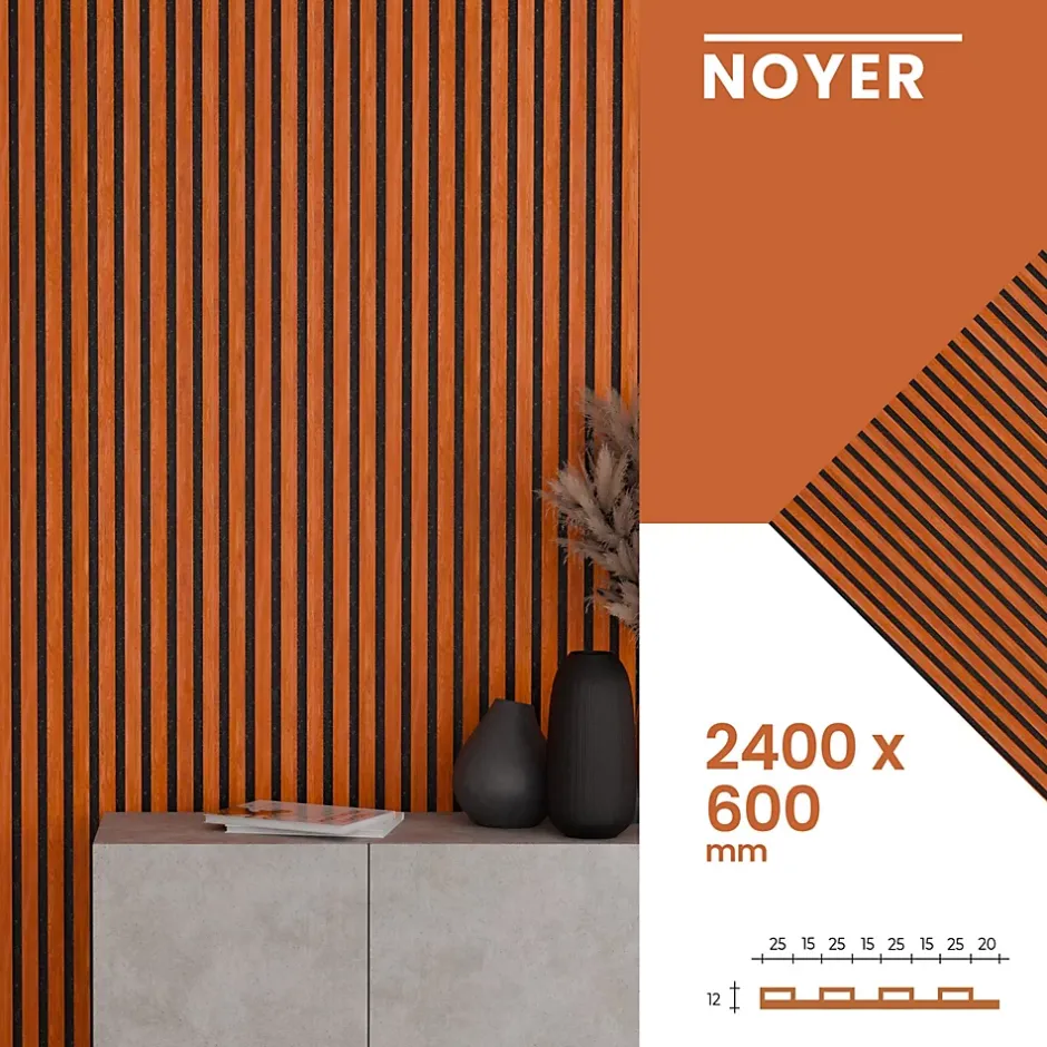 Son revêtement noyer élégant apporte une touche contemporaine et sophistiquée tout en absorbant efficacement les nuisances sonores. La combinaison des lattes noyer en MDF et du feutre acoustique crée une atmosphère moderne tout en améliorant le confort phonique de la pièce. Sa finition noyer chaleureuse met en valeur la décoration intérieure et réduit les échos pour une meilleure qualité sonore. Le contraste du noyer avec des murs plus clairs ou plus foncés offre un design haut de gamme et améliore l’acoustique de l’espace. Facile à poser grâce à son format standard, le panneau transforme vos murs en un habillage noyer chic tout en réduisant la réverbération. Conçu avec des matériaux robustes et durables, il assure une isolation phonique efficace tout en ajoutant une touche moderne. Son design noyer sobre et élégant s’intègre parfaitement dans les intérieurs contemporains tout en rendant la pièce plus confortable acoustiquement. La couleur noyer apporte authenticité et chaleur, créant une ambiance conviviale et raffinée. L’association du noyer et du feutre acoustique apporte une double fonction : décoration murale raffinée et amélioration acoustique. Grâce à son style noyer intemporel, il s’adapte aussi bien aux espaces professionnels qu’aux intérieurs modernes tout en optimisant l’acoustique.