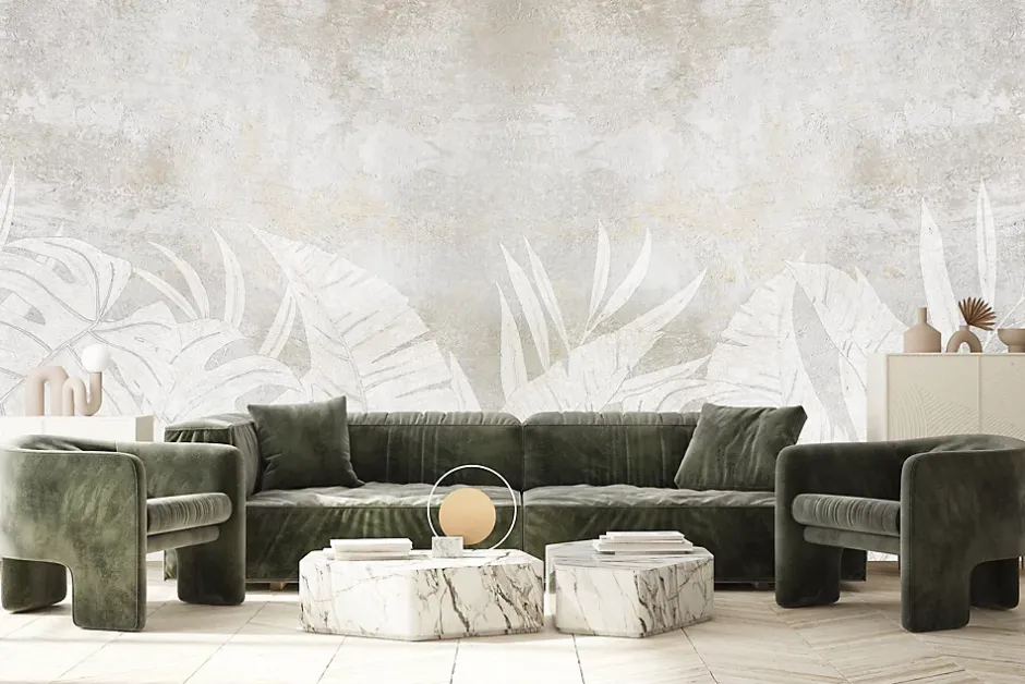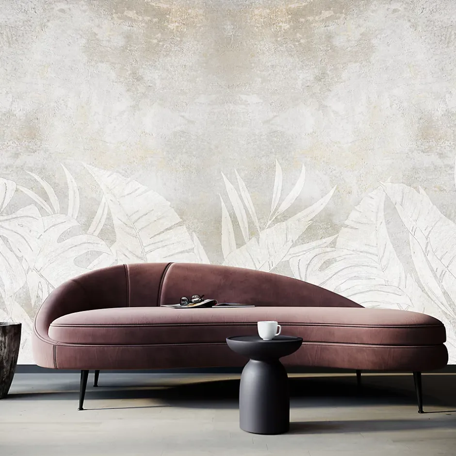 Muralo Papier Peint Intissé Photo Pour Salon FEUILLES Béton Abstraction 360cm x 240cm