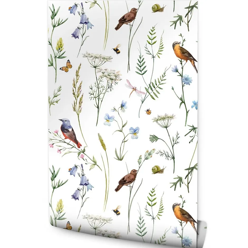 Muralo Papier Peint Intissé Pour Salon OISEAUX Fleurs Feuilles Nature