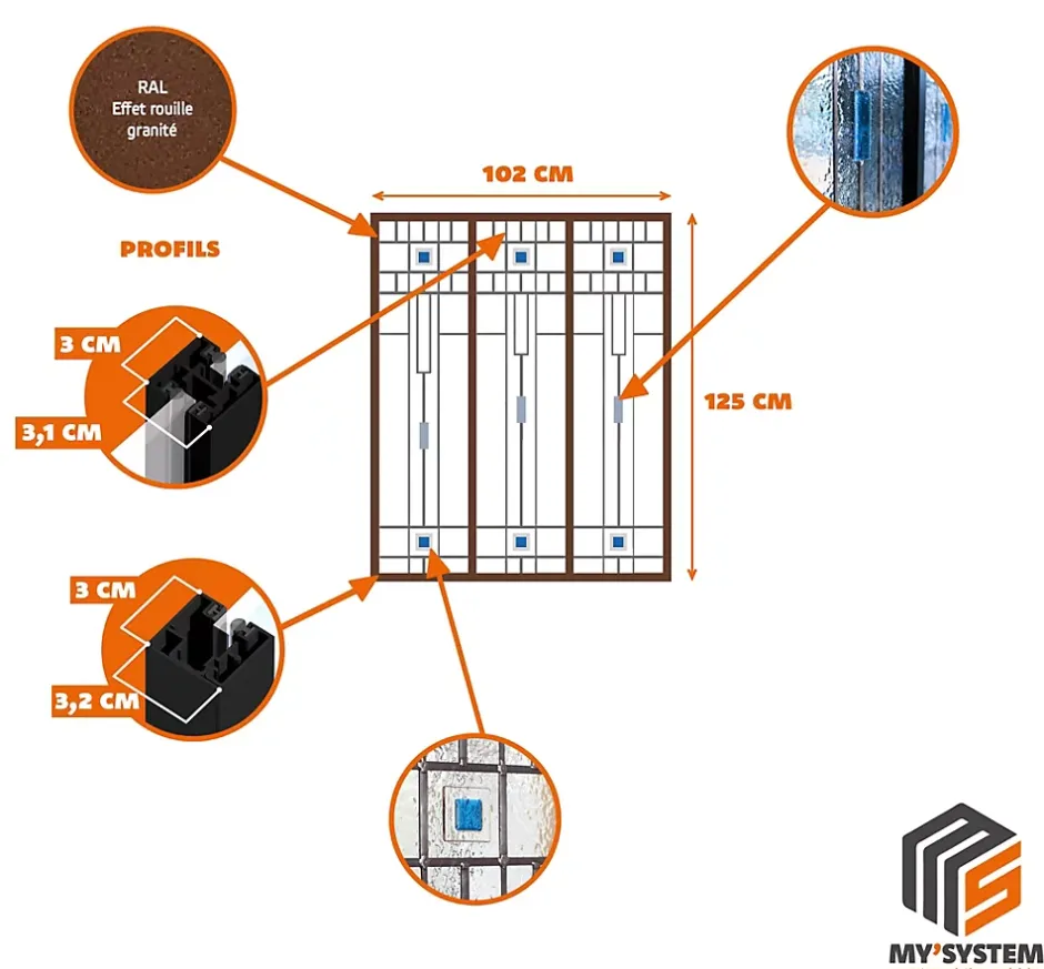 Largeur d’ouverture préconisée : 102,5 cm | Hauteur d’ouverture préconisée : 125,5 cm