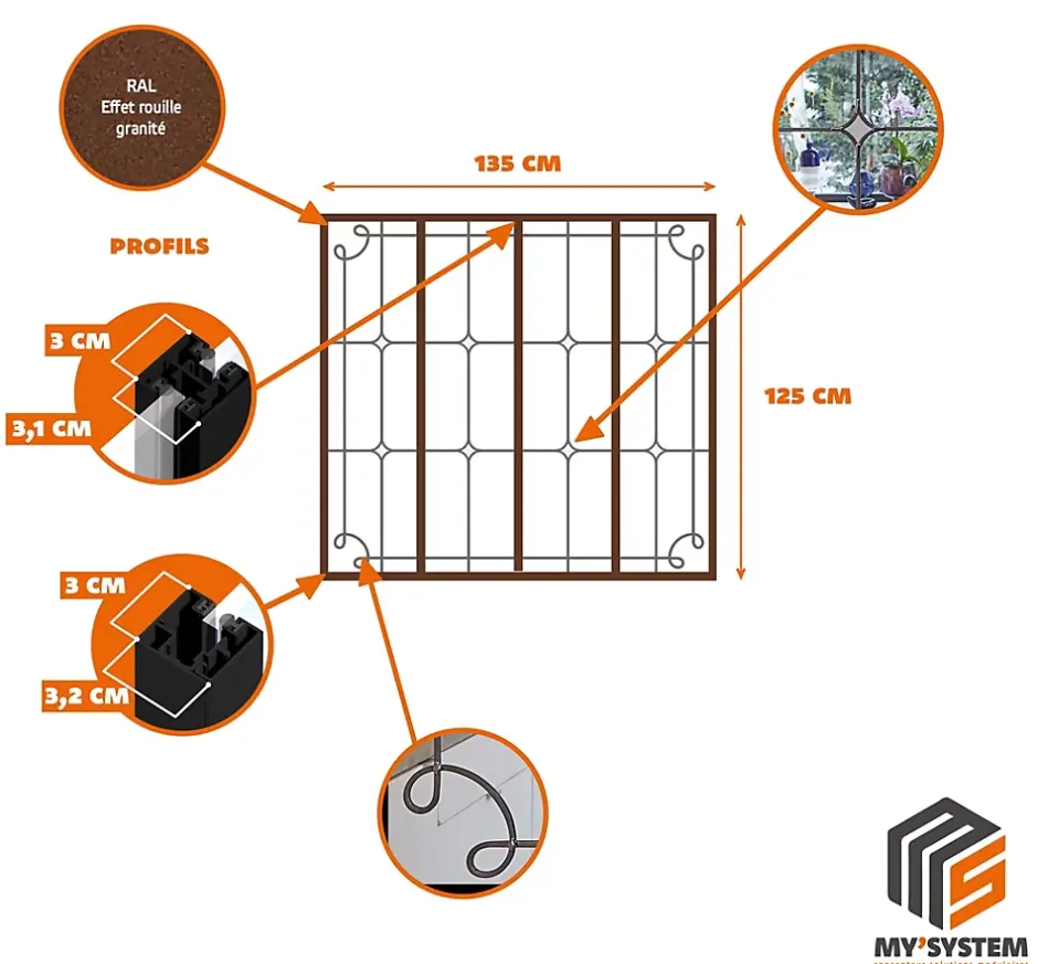 Largeur d’ouverture préconisée : 135,5 cm | Hauteur d’ouverture préconisée : 125,5 cm
