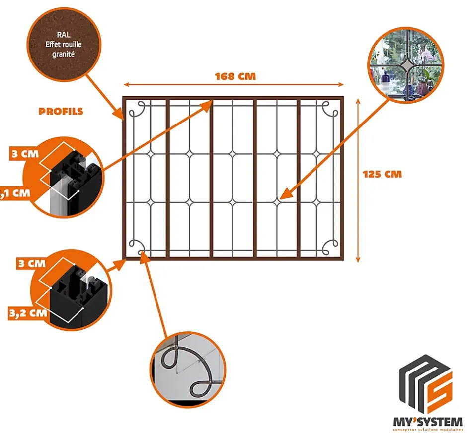 Largeur d’ouverture préconisée : 168,5 cm | Hauteur d’ouverture préconisée : 125,5 cm