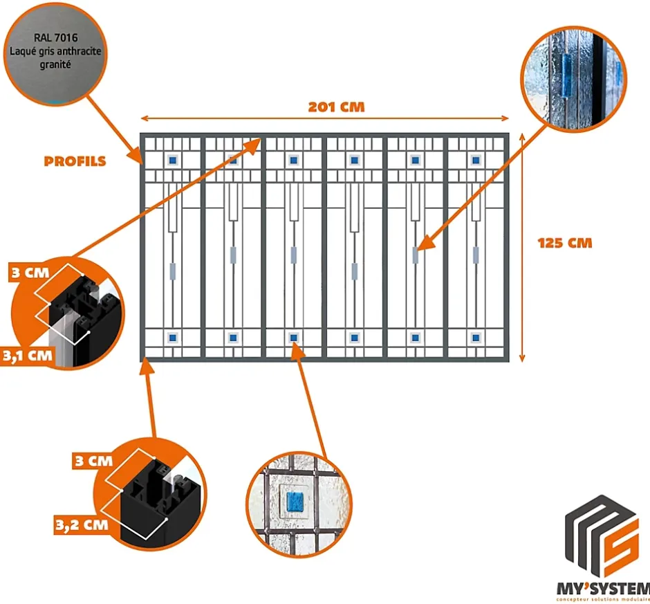 Largeur d’ouverture préconisée : 201,5 cm | Hauteur d’ouverture préconisée : 125,5 cm