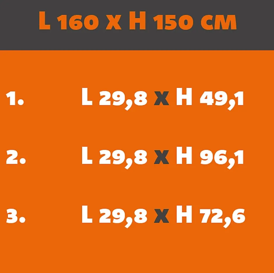 Largeur d’ouverture préconisée : 160,5 cm | Hauteur d’ouverture préconisée : 150,5 cm