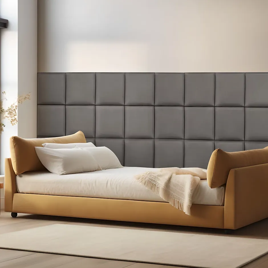 - Améliore l’acoustique et réduit les bruits : Les coussins muraux aident à atténuer les bruits ambiants, améliorant l’acoustique de la pièce pour une atmosphère plus paisible et agréable.