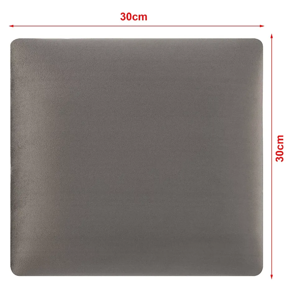 Set de 4 coussins murauxNotre lot de panneaux muraux ajoute une touche de confort à chaque espace de vie, parfait comme tête de lit, décoration pour la chambre d’enfant ou coin lecture. L’ensemble comprend 4 coussins individuels fixés sur des plaques MDF stables. Faciles à installer, ils se collent au mur sans perçage gâce à une colle de montage.Les panneaux peuvent être combinés librement, permettant des décorations murales personnalisées et flexibles. En plus de leur attrait visuel, ces panneaux améliorent l’acoustique de la pièce en atténuant les bruits. Leur toucher agréable ajoute au bien-être, faisant de ce set un choix pratique et esthétique.Faciles à entretenir, les coussins se nettoient avec un chiffon humide, assurant leur attrait et leur hygiène à long terme.Points forts :- set de 4 coussins muraux pour une atmosphère confortable- fixation rapide avec colle de montage, sans perçage- idéal comme dossier de lit ou de banc- parfait pour décorer la chambre d’enfant- crée un coin lecture relaxant- améliore l’acoustique et réduit les bruits- facile à entretenir – possibilité de combiner individuellementMatière :- housse : velours (100% polyester)- rembourrage : mousse (100% polyuréthane)- dos (plaque de support) : MDFDimensions :- coussins (longueur x largeur) : 30 x 30 cm chacun- épaisseur des coussins : 3 cm chacunCouleur :gris foncéContenu de la livraison :4 x coussins murauxRemarque :La colle de montage n’est PAS comprise dans la livraison !Produit de la marque :[neu.haus]
