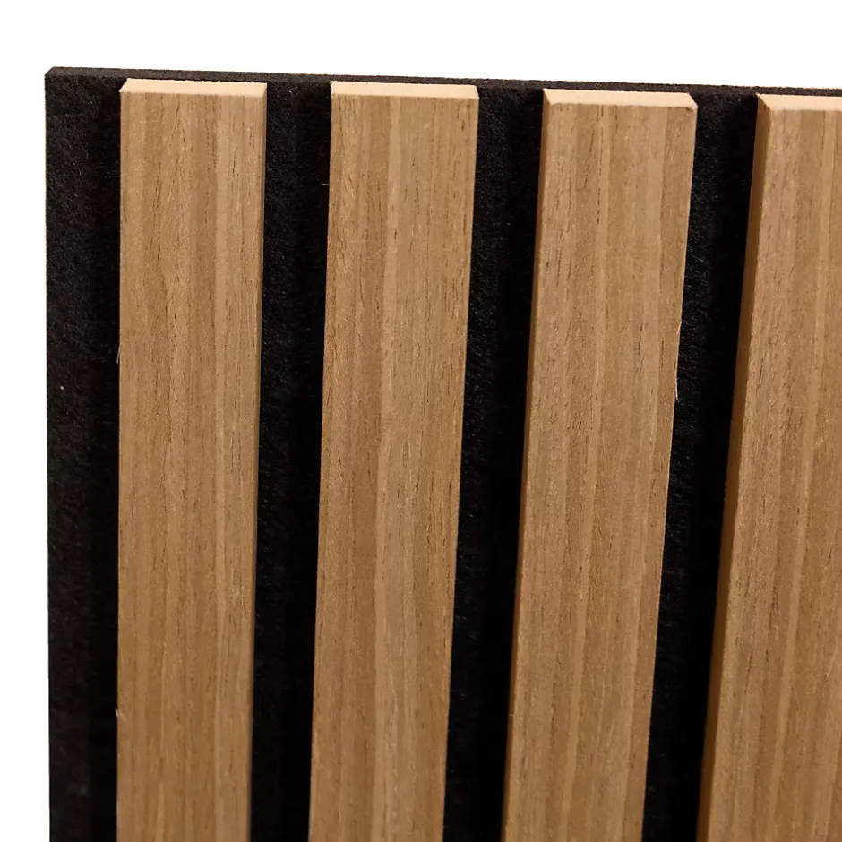 Lot de 12 panneaux acoustiquesLes 12 panneaux de ce lot conviennent à tous types de murs et plafonds, améliorant ainsi l’acoustique de votre chambre ou de votre espace. Leur finition design crée une atmosphère agréable et offre une solution pratique pour optimiser l’acoustique de votre environnement.Description :- ensemble de 12 panneaux pour mur ou plafond- améliore l’acoustique et assure l’isolation sonore- rajoute une touche scandinave à votre intérieur- possiblité de découper les panneaux selon vos besoins- installation facile à vis ou colle- 15 lattes décoratives par panneau- coefficient de réduction du bruit NRC 0,8 et classe d’absortion acoustique BDimensions :- totates (Hauteur x Largeur x Profondeur) : 120 x 60 x 2,1 cm- largeur lattes : 27 mm- espace entre lattes : 13 mm- épaisseur lattes : 12 mm- pièces de montage : 9 mm- surface totale (12 panneaux) : 8,64 m²Matière :- lattes : MDF contreplaqué- panneau de suspension : PET feutre acoustiqueCouleur :effet chêne foncéA noter :Pour une installation au plafond, il est recommandé d’utiliser des vis ainsi que de la colle.Contenu de la livraison :12 x panneauxProduit de la marque :NEU.HOLZ