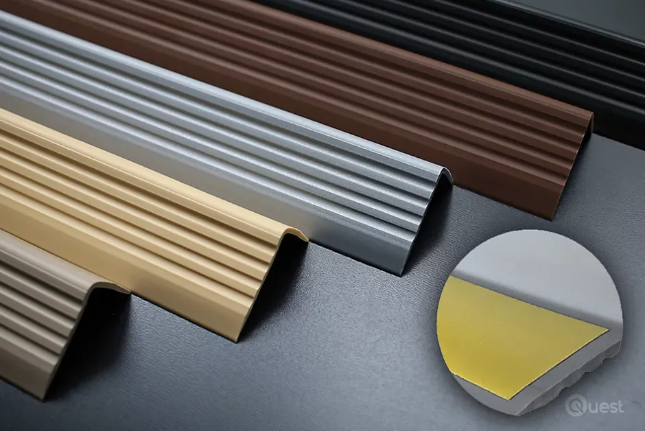Nez de marche PVC 40x25mm, , profilé d'escalier ND, auto-adhésif, antidérapant, d'escalier-protection, laiton, 1.3m-Quest New