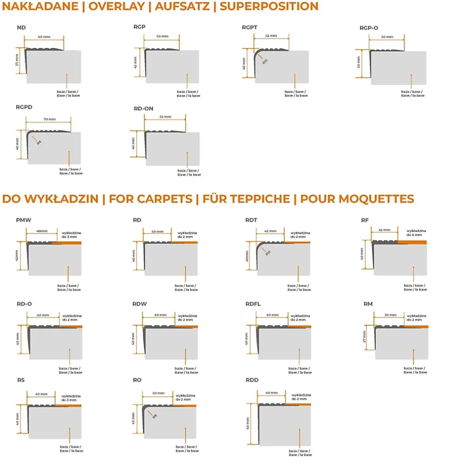 Profil d’escalier avec élément d’avertissement – sécurité et durabilitéProfil d’escalier de haute qualité, conçu pour allier sécurité et esthétisme. Grâce à son élément d’avertissement intégré en jaune et à sa surface rainurée, il minimise les risques de glissade et de chute, garantissant une utilisation confortable. Fabriqué à partir d’un mélange spécial de PVC, il offre une résistance élevée aux dommages mécaniques et une longue durée de vie sans entretien. Idéal pour les marches à bord droit, il est également compatible avec le système d’escalier QuestProfile.L’installation du profil est extrêmement simple et ne nécessite aucun outil spécifique. Grâce à son adhésif intégré, il suffit de nettoyer et de lisser la surface de l’escalier avant de presser fermement le profil sur la marche. En cas de basses températures, il est recommandé de le chauffer légèrement avec de l’air chaud avant la pose. Ce profil n’est pas adapté aux revêtements de moquette, mais il convient parfaitement aux surfaces dures.Avec son design esthétique et sa large gamme de couleurs, ce profil s’intègre facilement dans différents styles d’intérieurs. Sa structure rainurée spécialement conçue améliore l’adhérence et facilite le nettoyage. De plus, il est flexible et possède une « mémoire de forme », assurant un ajustement optimal aux marches. Enfin, son emballage robuste protège le produit pendant le transport pour une livraison en toute sécurité.