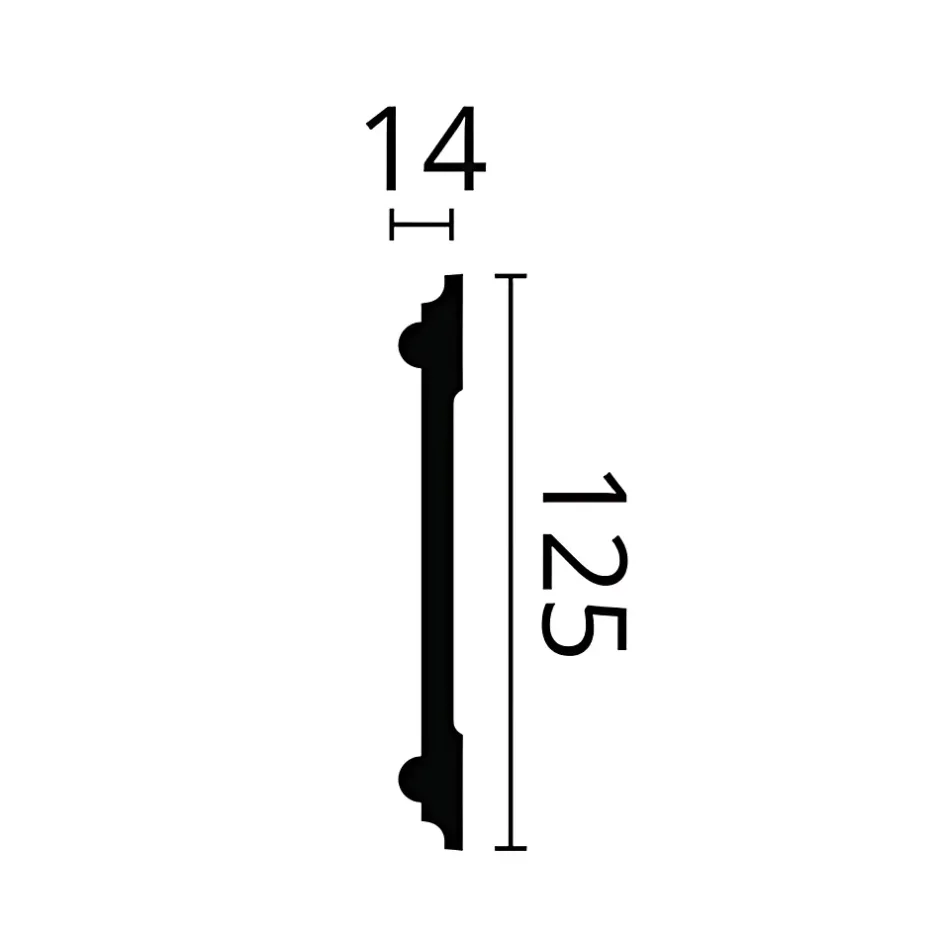 - Cimaise, dimensions: 200 cm x 1,4 cm x 12,5 cm. La surface est prétraité