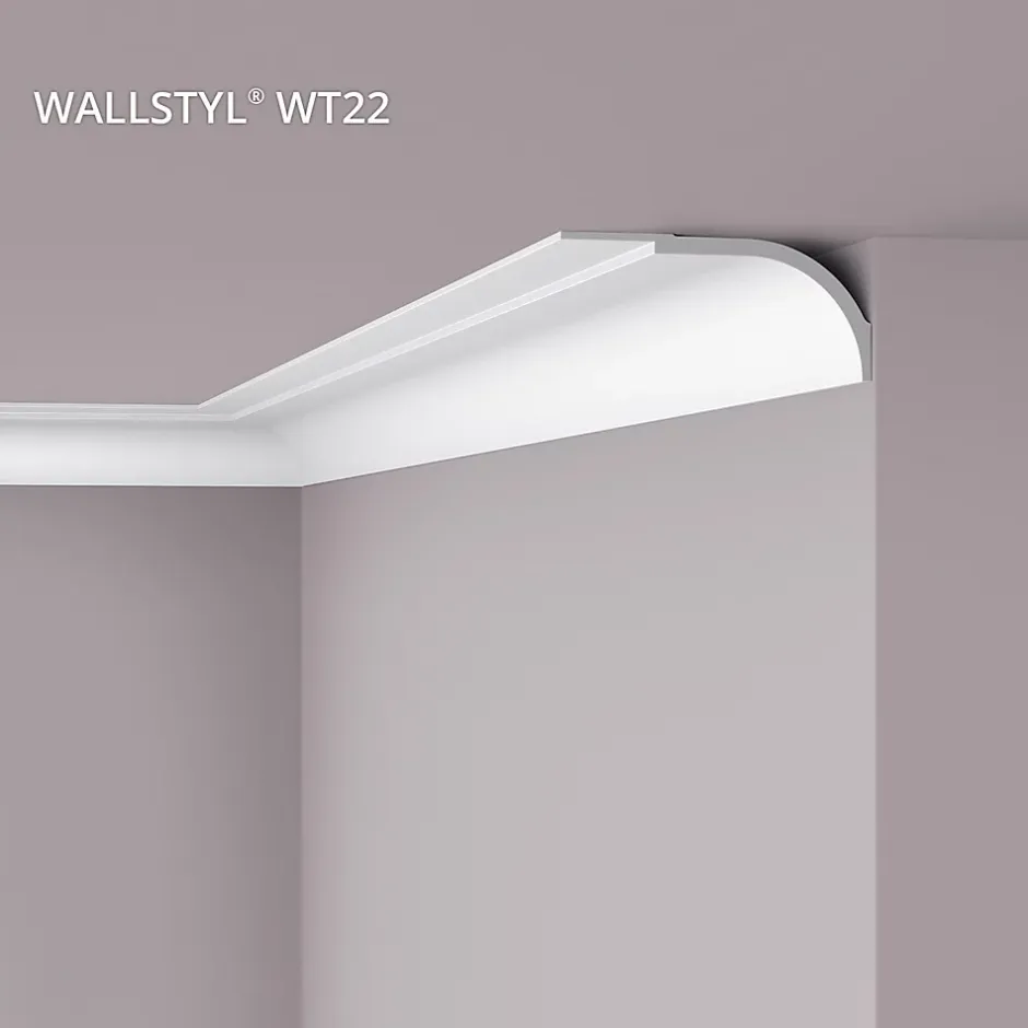 Numéro d’article WT22 Type de produit Corniche Fabricant NMC Pays / région de production Belgique Collection WALLSTYL Modèle no. WALLSTYL | WT22 Matériau Polystyrène extrudé (HDPS) Version pas flexible Longueur (cm) 200 Largeur (cm) 22.5 Hauteur (cm) 10 Couleur de base blanc Style moderne Adhésif approprié ADEFIX (intérieurs, enduit), ADEFIX Plus (pièces humides, joints) Propriétés du matériau léger, indéformable, résistant aux chocs Finition de surface prétraité Apprêt apprêt blanc mat sur base acrylique Approprié pour intérieurs