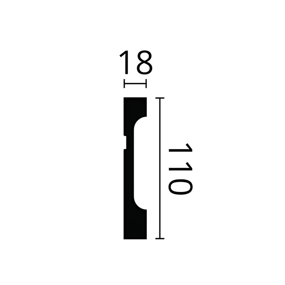 - Plinthe, dimensions: 200 cm x 1,8 cm x 11 cm. La surface est prétraité