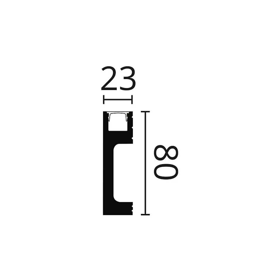 - Plinthe, dimensions: 200 cm x 2,3 cm x 8 cm. La surface est prépeinte en noir (RAL 7021)