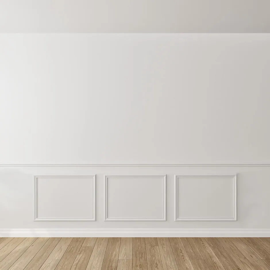 Pack pour habiller un mur de 265 à 300 cm avec des moulures en bois. Moulures prédécoupées et prêtes à poser. Les baguettes se posent pour créer un soubassement mural d’environs 60 cm de haut. Lors de la pose, veillez à laisser un espace identique entre chaque rectangle pour équilibrer les espacements. Possibilité de laisser plus ou moins d’espacement selon la largeur de votre mur tout en conservant un espace égal entre les cadres. Le kit se compose de :3 x Kit moulure 80 x 60 cm3 x moulure droite 100 cm