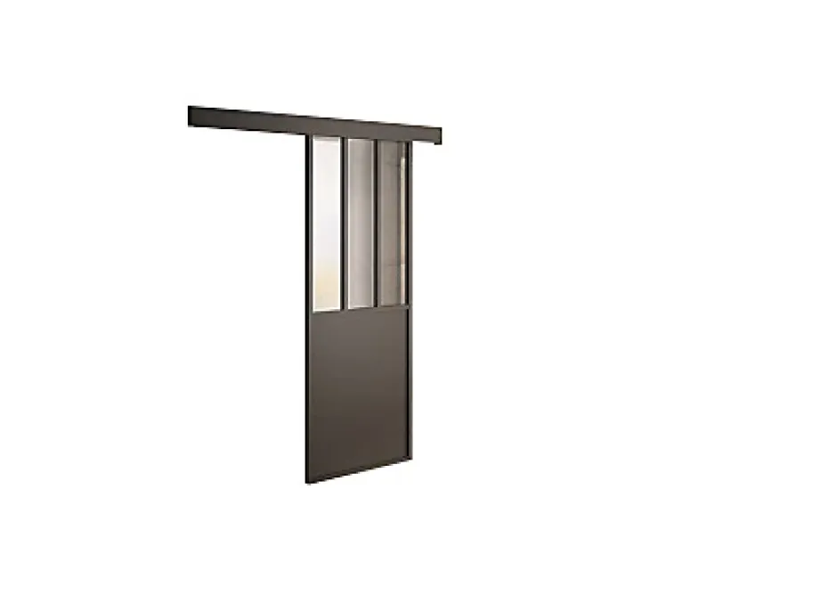 Kit porte 930 atelier noir verre depoli avec rail bandeau decor assorti