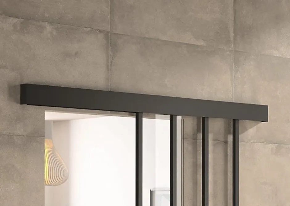 Kit porte coulissante en applique Atelier noir cadre en aluminium et verre transparent H 204 x 93 x 3,6 cm