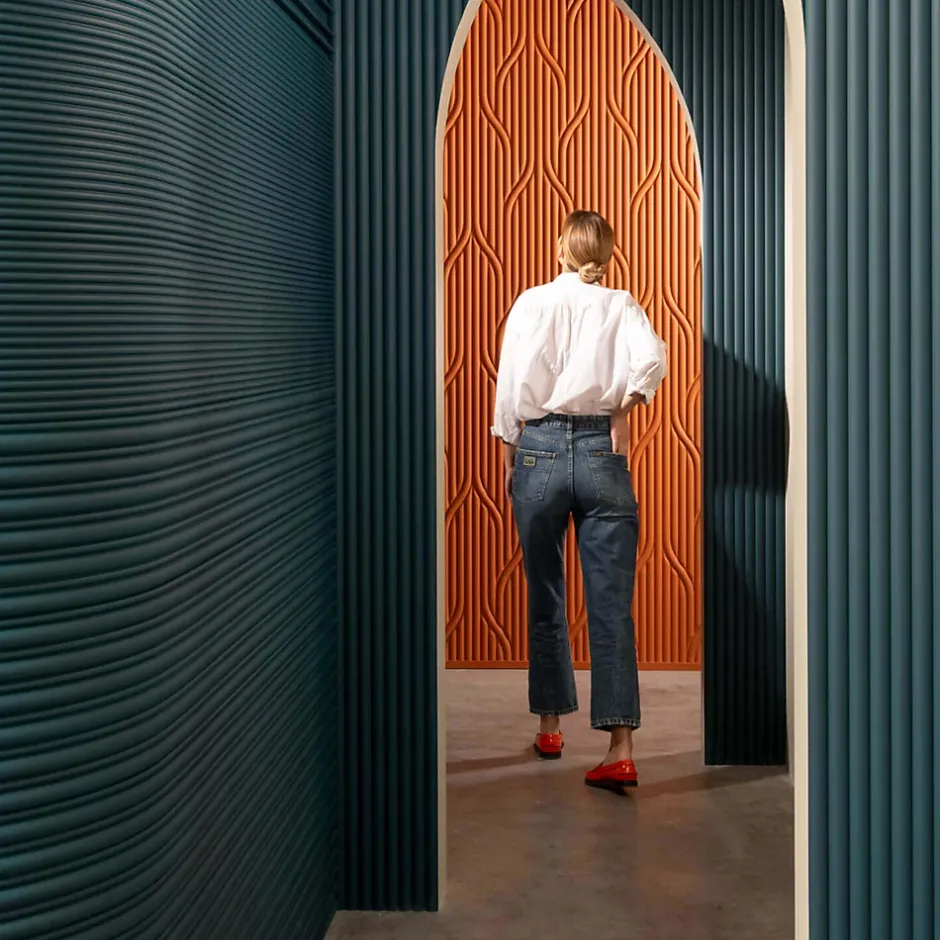 Version flexible de la WX211 Flute est un nouveau panneau mural exceptionnel. Placés à l’horizontale, les panneaux créent un effet dynamique, semblable à une vague. L’alternance de petites et de grandes bosses crée un jeu d’ombre et de lumière qui donne de la profondeur et du mouvement à la pièce. Lorsqu’ils sont posés verticalement, les panneaux offrent un sentiment d’élégance structurée, accentuant la hauteur de la pièce tout en créant une toile de fond visuellement intrigante. N’hésitez pas à faire appel à notre bureau d’études pour calculer le nombre de colles nécessaires (FDP700+FL300).Comme toutes les références ORAC, cette référence doit être peinte pour la protéger des UVs.