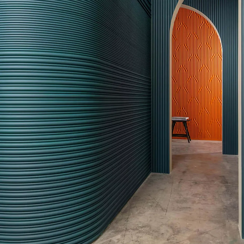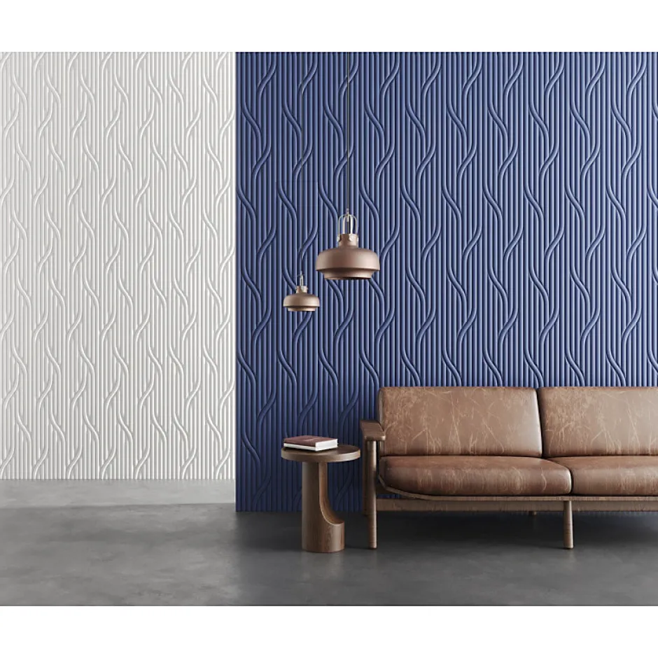 Variante artistique de W110 Hill, la W213 a des motifs fluides et directionnels rappelant les mailles d’un pull-over pour donner une atmosphère chaleureuse à votre intérieur. En jouant avec la direction des panneaux et la hauteur de la position, il est possible de créer des motifs et des textures intrigants. Conçu par Orio Tonini. N’hésitez pas à faire appel à notre bureau d’études pour calculer les quantités de colles nécessaires (FDP500 ou FDP700).Comme toutes les références ORAC, cette référence doit être peinte pour la protéger des UVs.